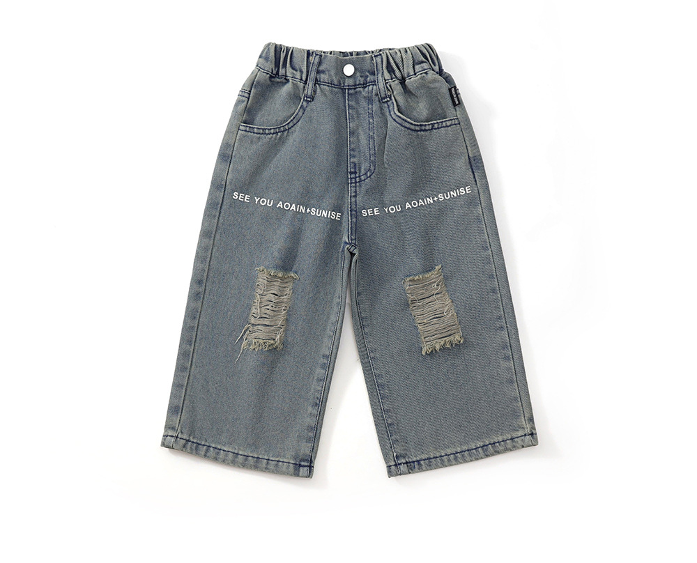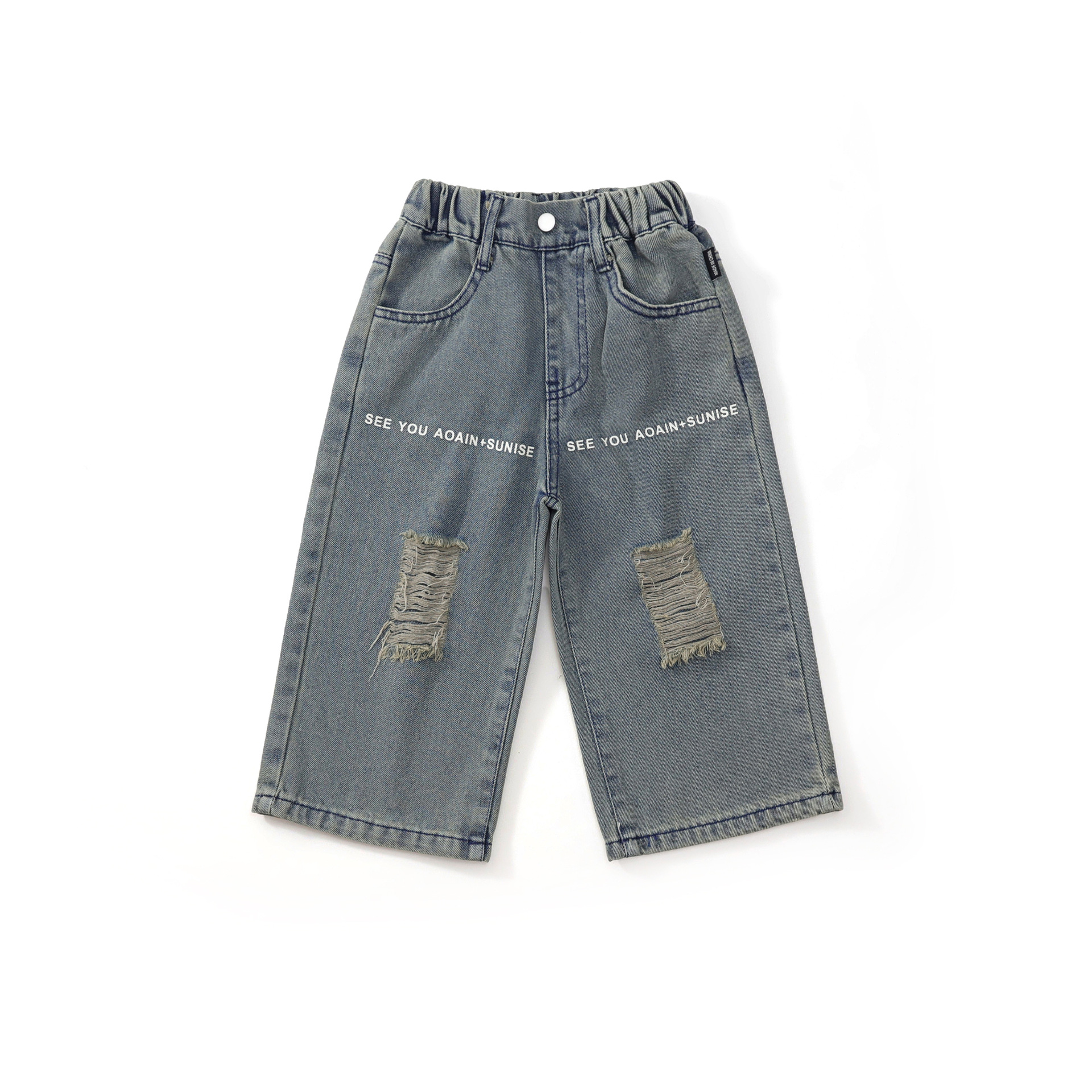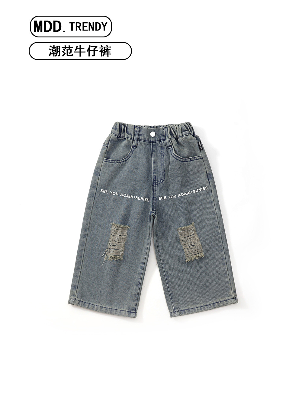 MDD 소녀 2025 새로운 여름 어린이 소년 소녀 사이버 연예인 느슨한 서양식 편지 찢어진 청바지에