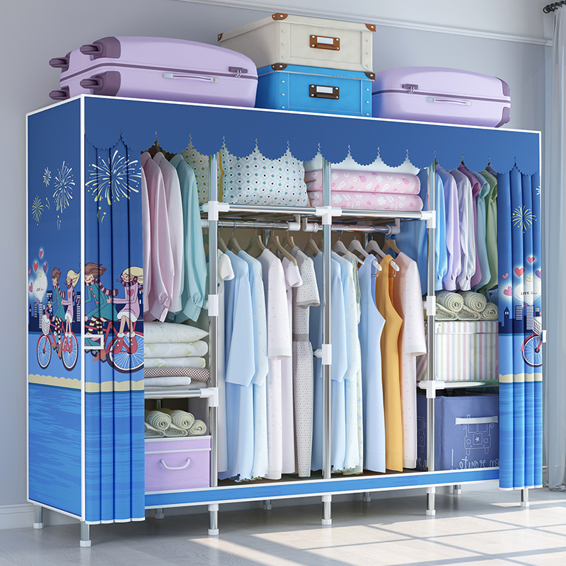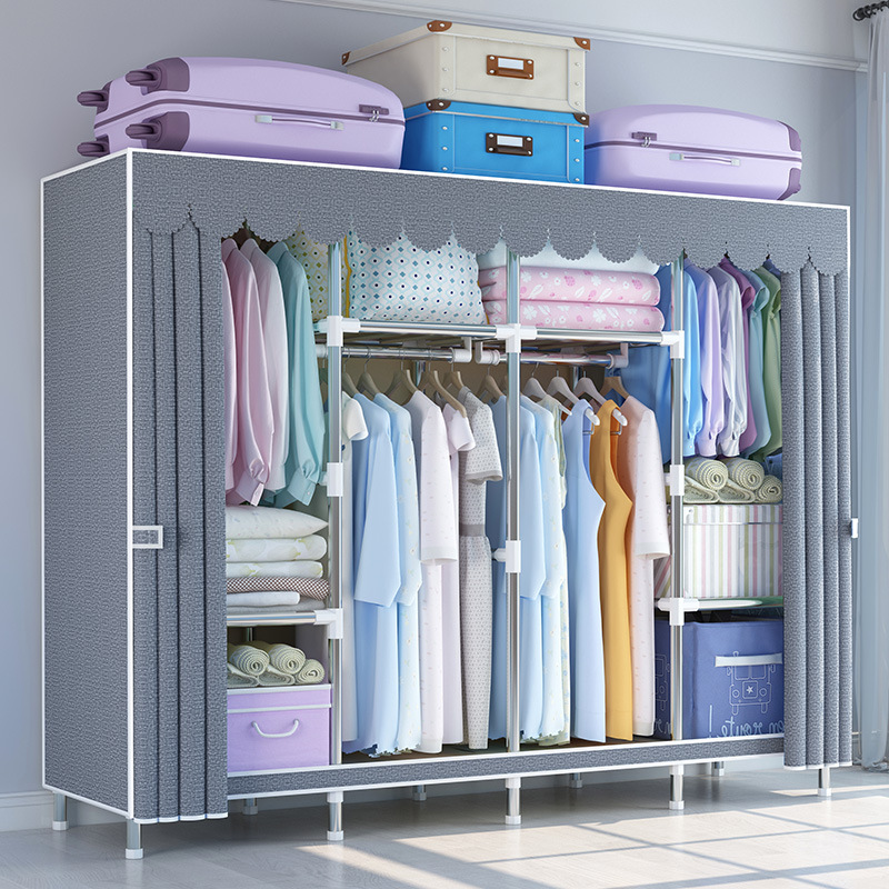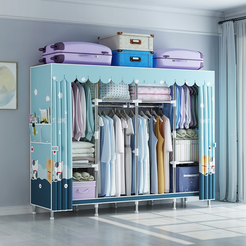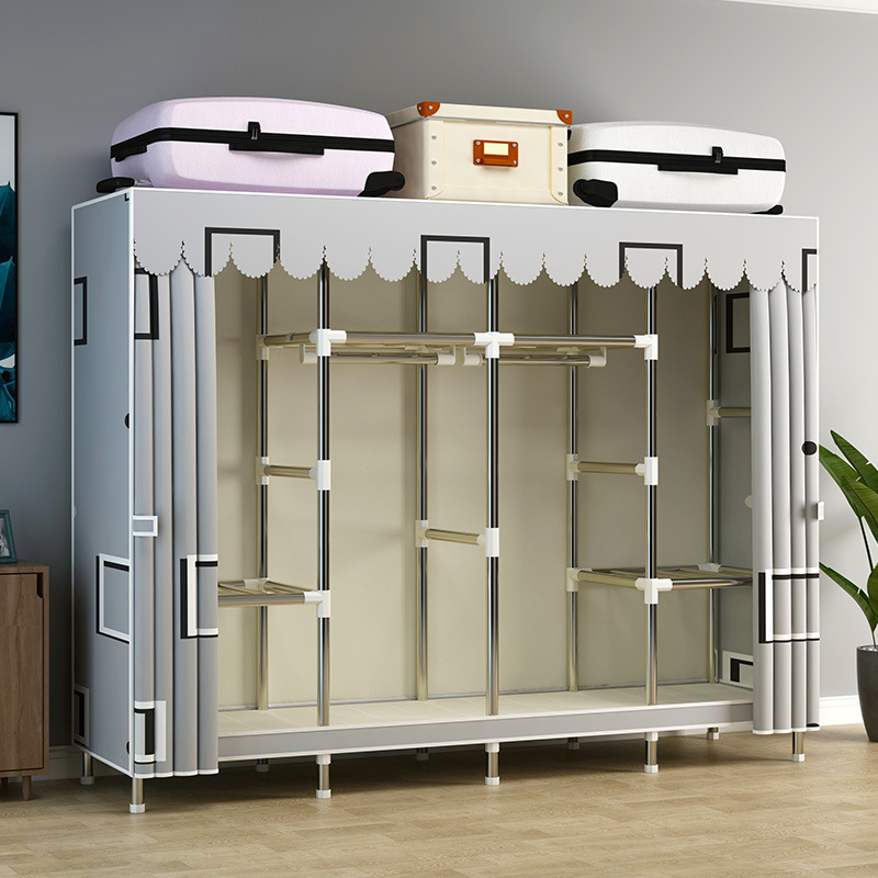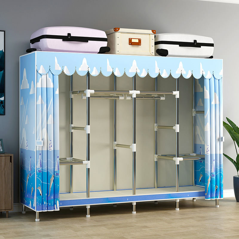 지퍼가 달린 간단한 천 옷장 강철 파이프 두꺼운 강화 조립 두꺼운 기숙사 옷장 완전히 밀폐된 보관함 방진스토어 가기