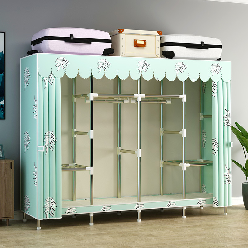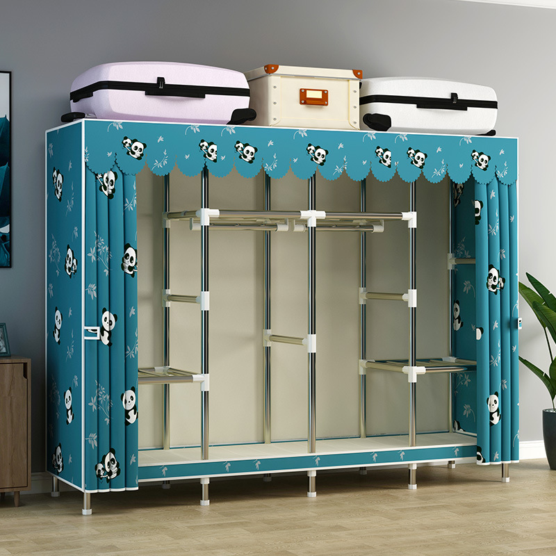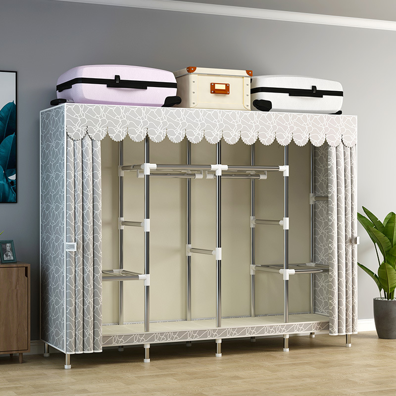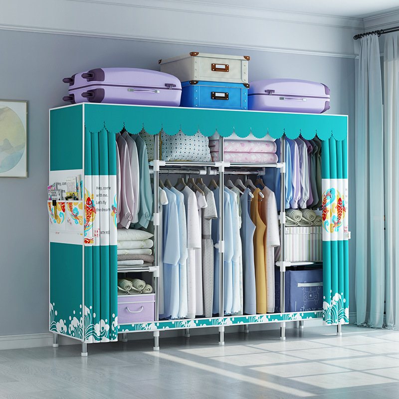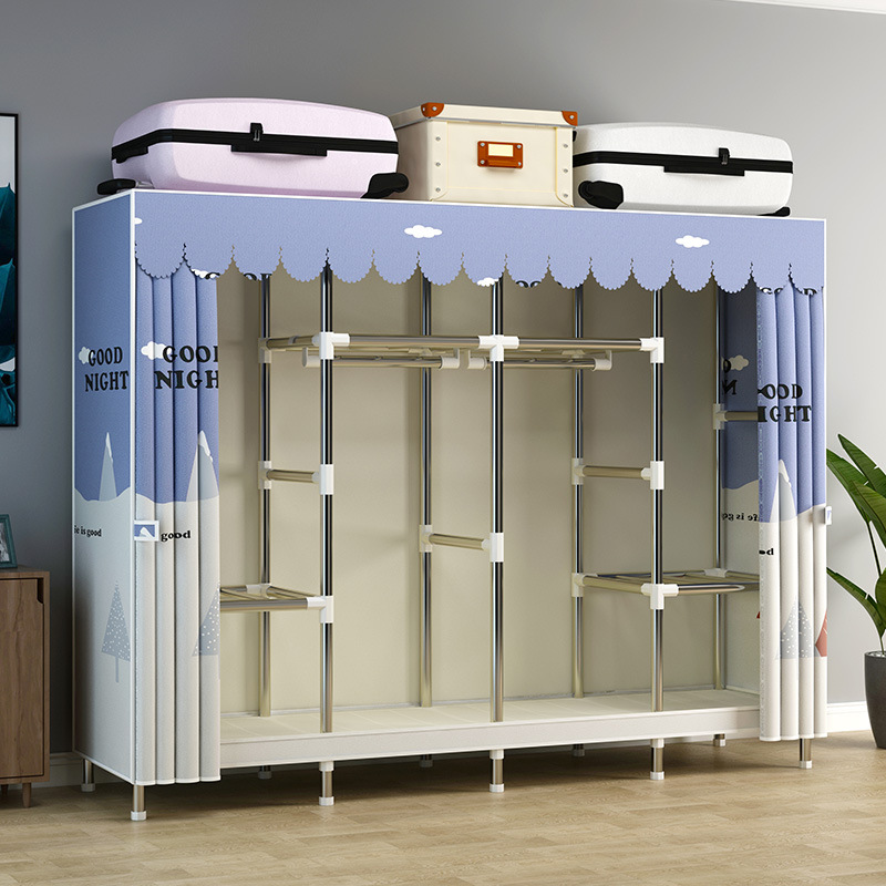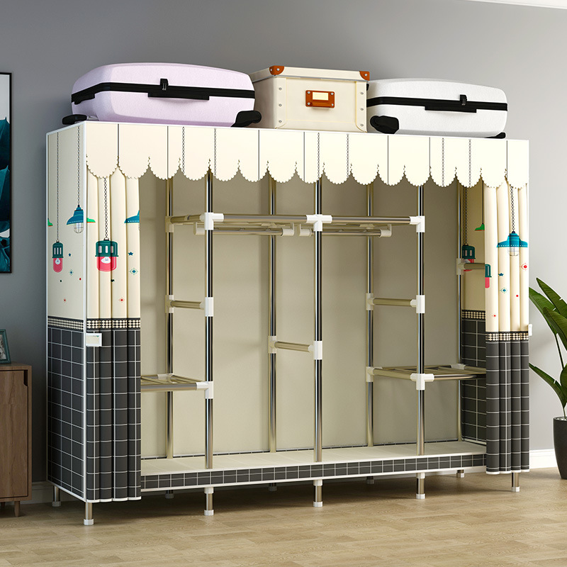 지퍼가 달린 간단한 천 옷장 강철 파이프 두꺼운 강화 조립 두꺼운 기숙사 옷장 완전히 밀폐된 보관함 방진스토어 가기