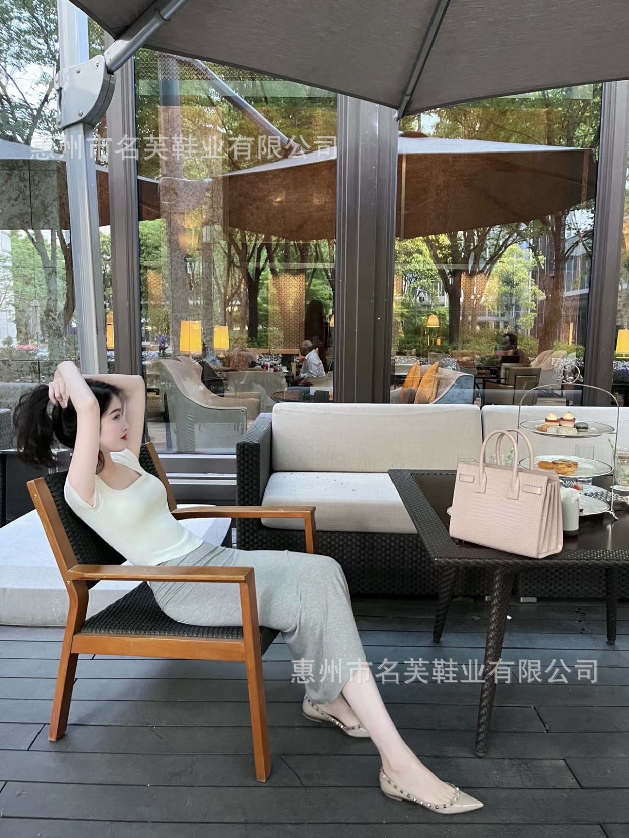 높은 버전의 엄격한 선택 ~ 워렌 리벳 뾰족한 평평한 신발 얕은 입 신발 여성의 2025 새로운 누드 네일 여성 신발스토어 가기