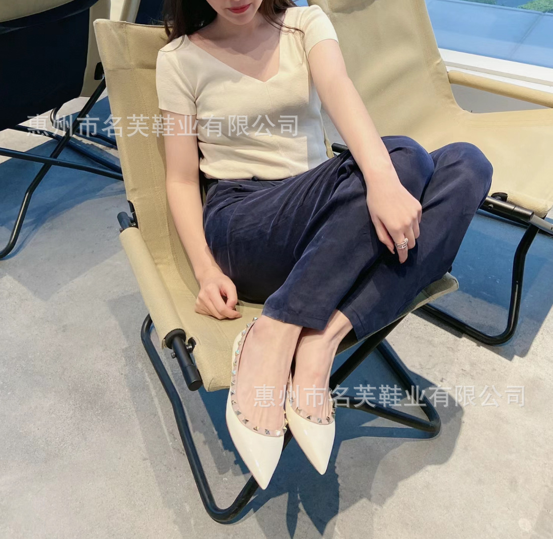 높은 버전의 엄격한 선택 ~ 워렌 리벳 뾰족한 평평한 신발 얕은 입 신발 여성의 2025 새로운 누드 네일 여성 신발