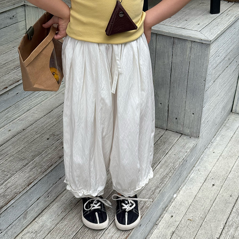 Aimo Beibei 여자 여름 아기 다목적 긴 바지 디자인 달콤한 레이스 커프 모기 방지 바지스토어 가기