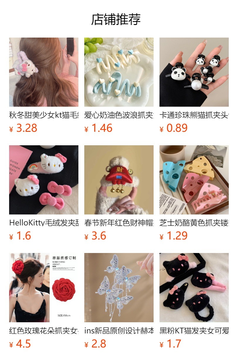한국식 만화 산리오 키티 고양이 잡아 클립 머리 포니 클립 대형 상어 클립 인 스타일 헤어핀 헤어 액세서리스토어 가기