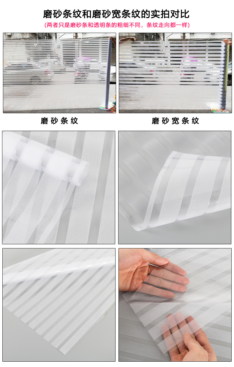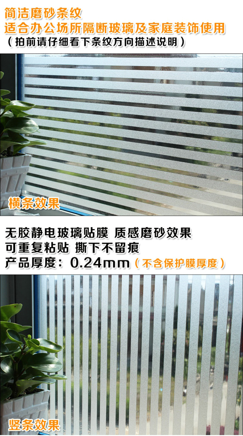 줄무늬 반투명 유리 스티커 사무실 욕실 프라이버시 필름 투광성 정전기 접착제가 없는 유리창 필름 매트