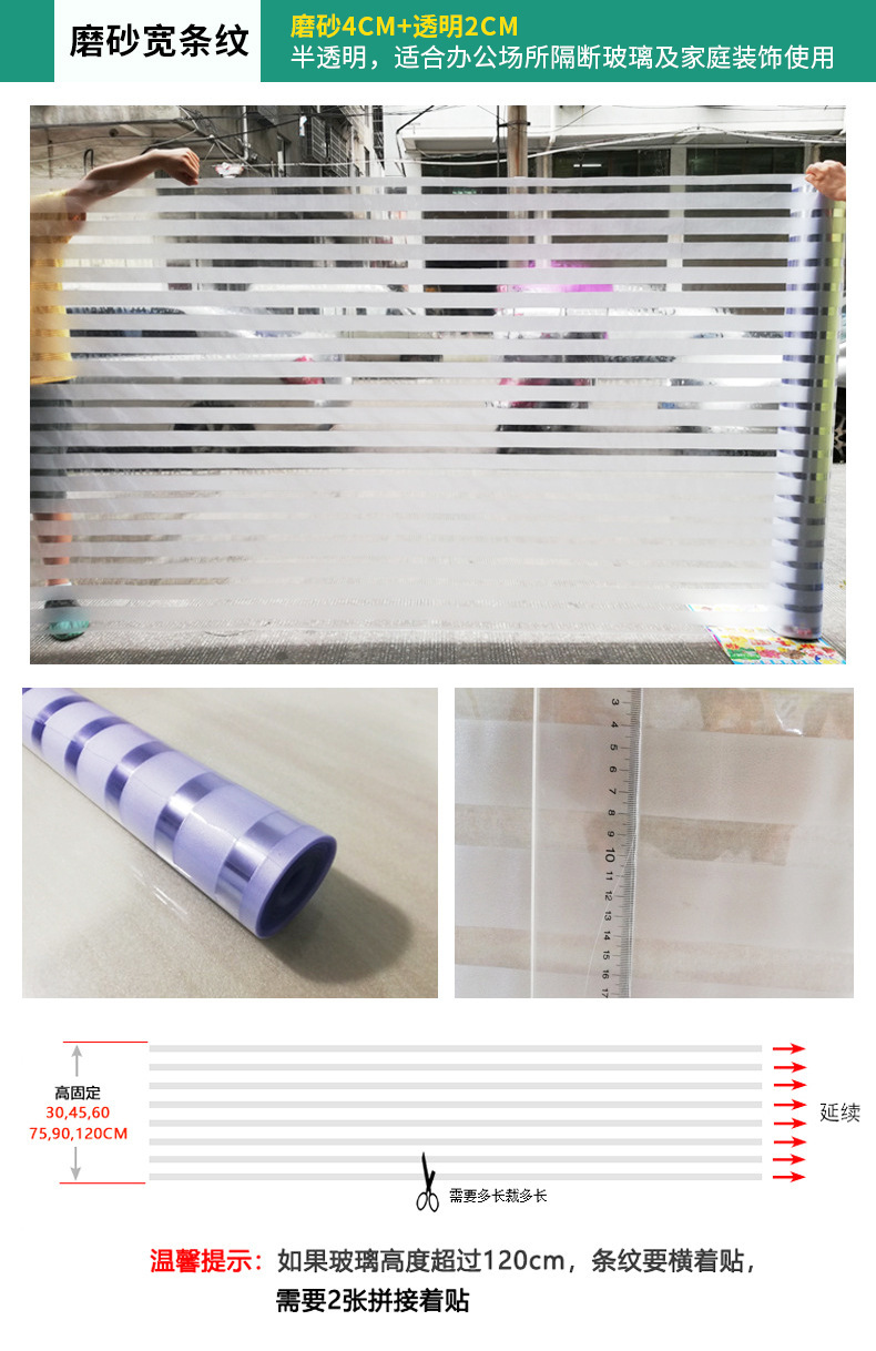 줄무늬 반투명 유리 스티커 사무실 욕실 프라이버시 필름 투광성 정전기 접착제가 없는 유리창 필름 매트스토어 가기