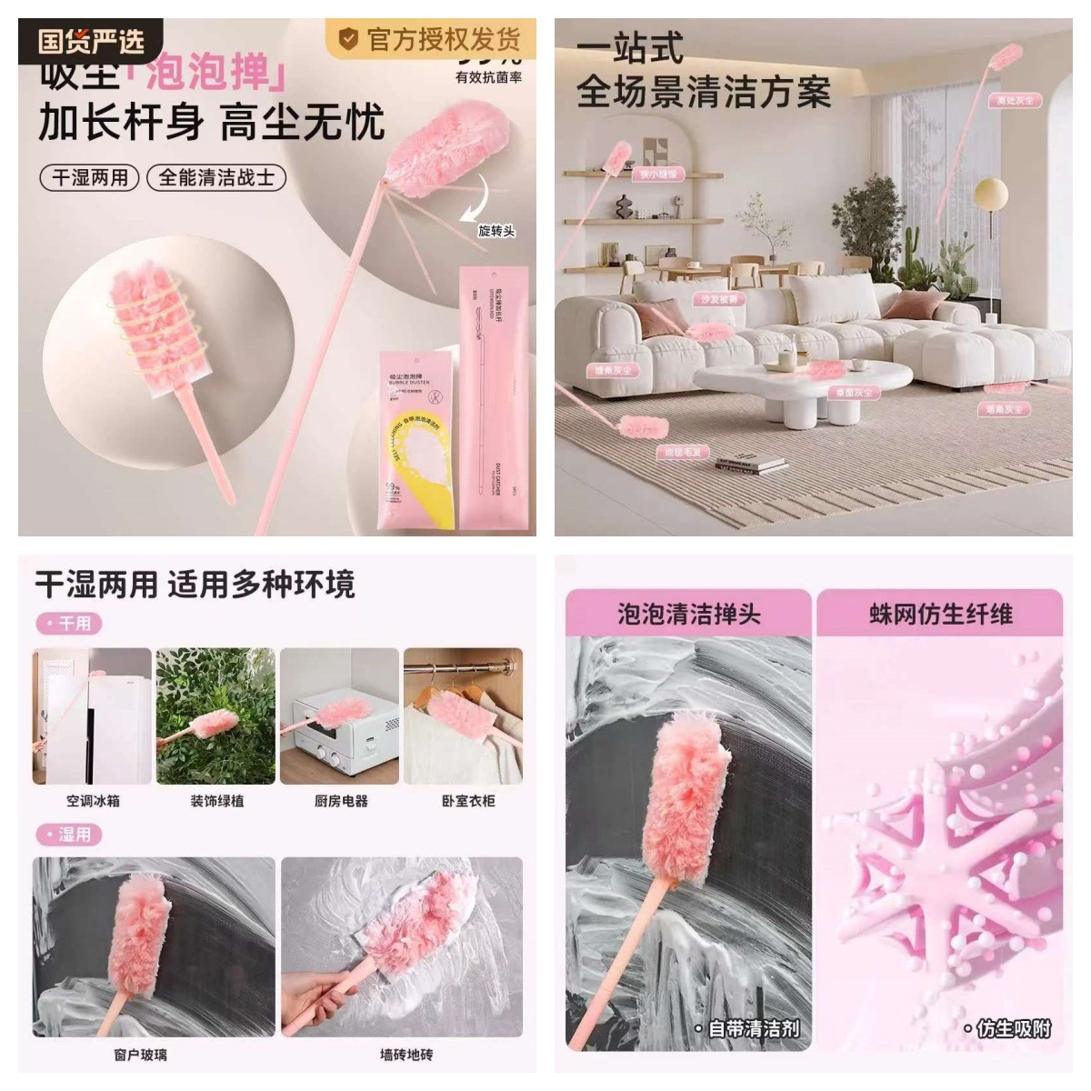 • 사쿠라 핑크 [길이 조절 가능한 긴 폴] 버블 더스터*1+손잡이*1+연장 폴*1