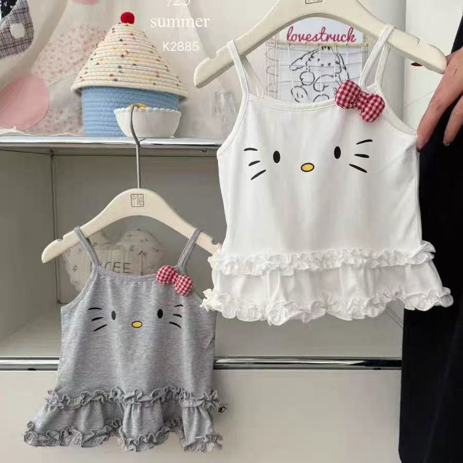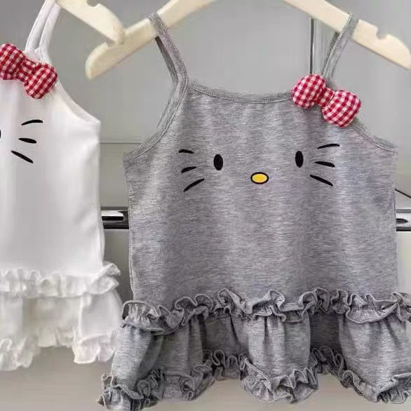 여자 캐미솔 여름 새로운 어린이 만화 고양이 민소매 탑 여자 레이스 인형 셔츠 티셔츠스토어 가기