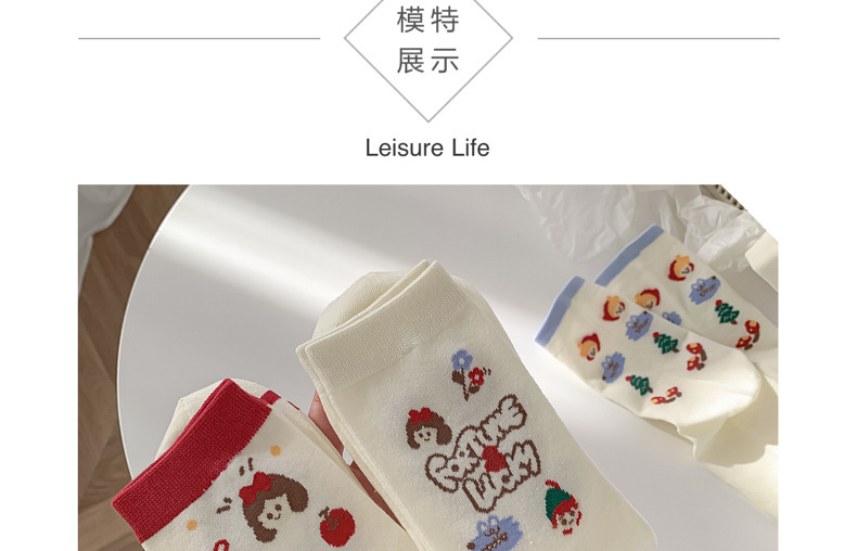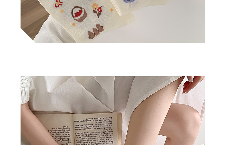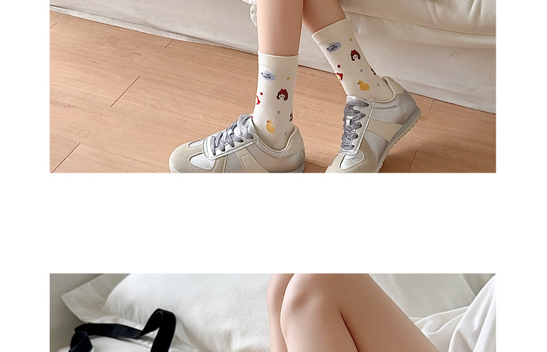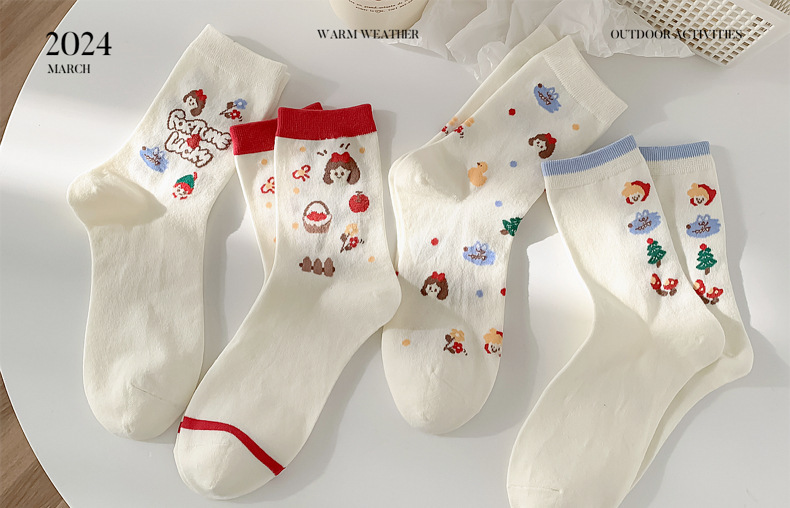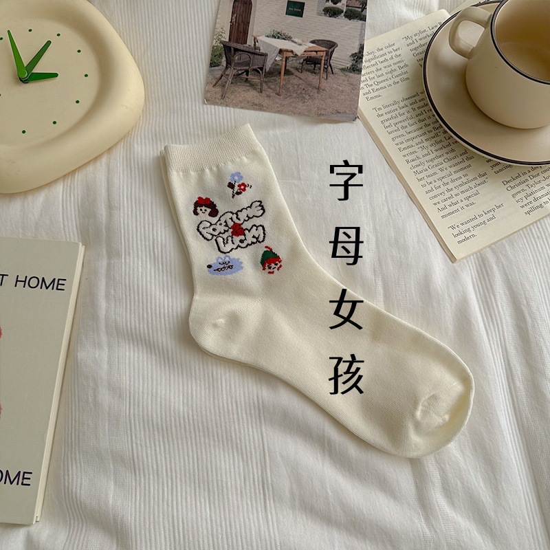 동화 타운 귀여운 소녀 한국 스타일 양말 여성 중간 길이 양말 봄 가을 귀여운 스타일 만화 패션 화이트 올 매치 스타킹