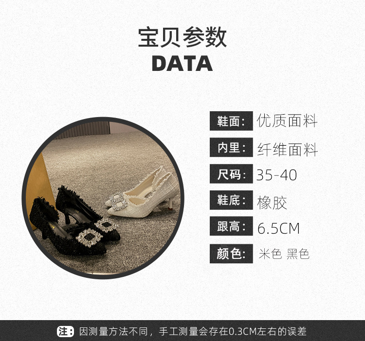 高跟鞋女2025年夏季新款小众设计法式尖头鞋子细跟小香风水钻单鞋