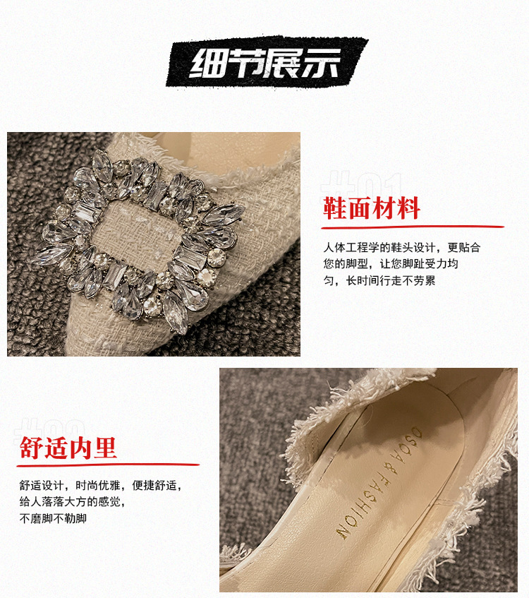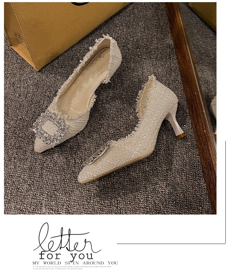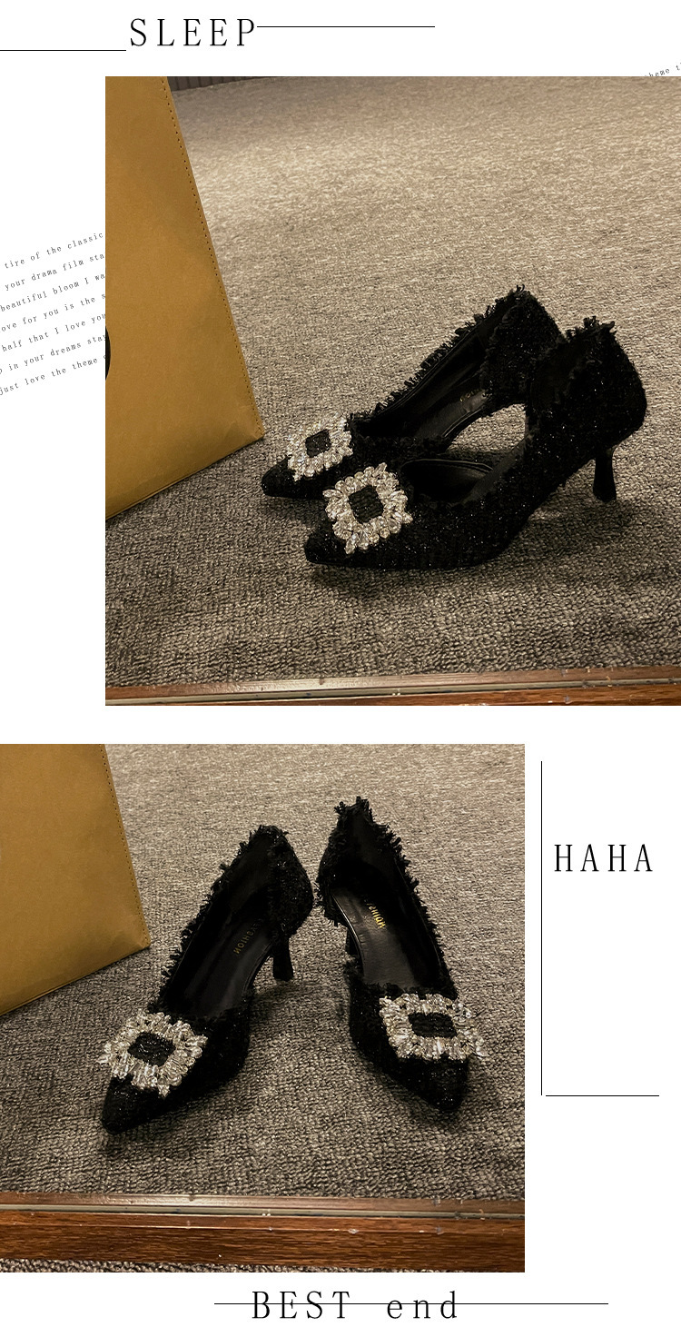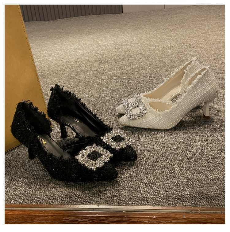 여성용 하이힐 2025 여름 새로운 틈새 디자인 프렌치 포인티드 슈즈 스틸레토 힐 작은 향기로운 모조 다이아몬드 슈즈