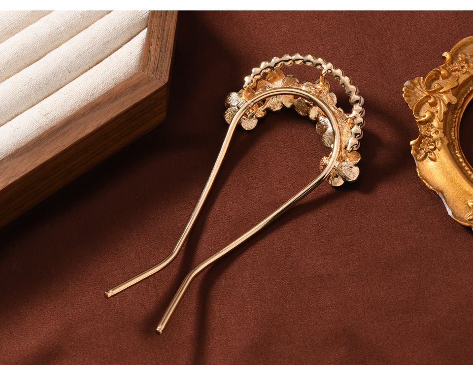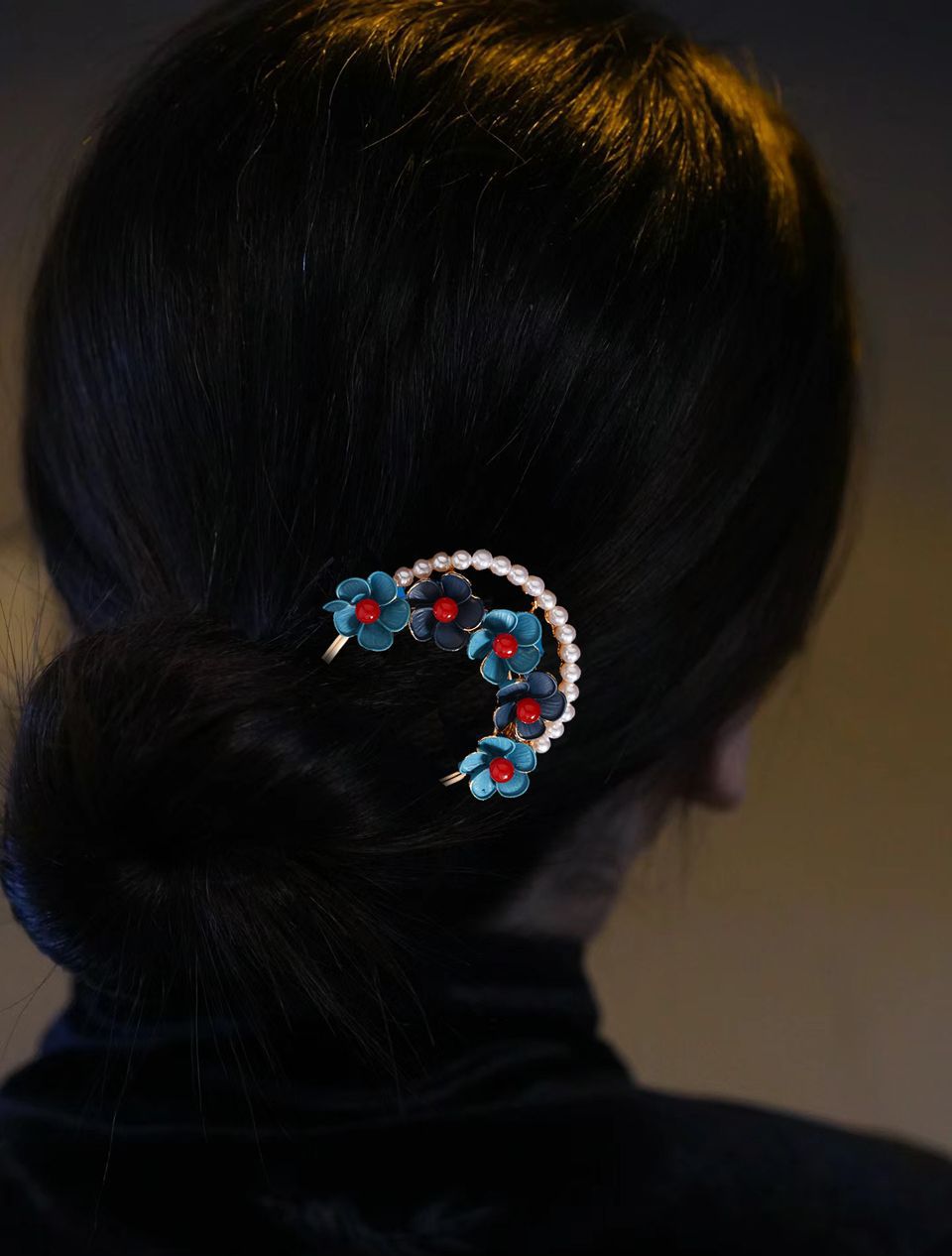 중국 스타일 모조 파란색 꽃 큰 U 머리핀 작은 진주 부서진 꽃 볼 머리 다목적 Hanfu 머리핀