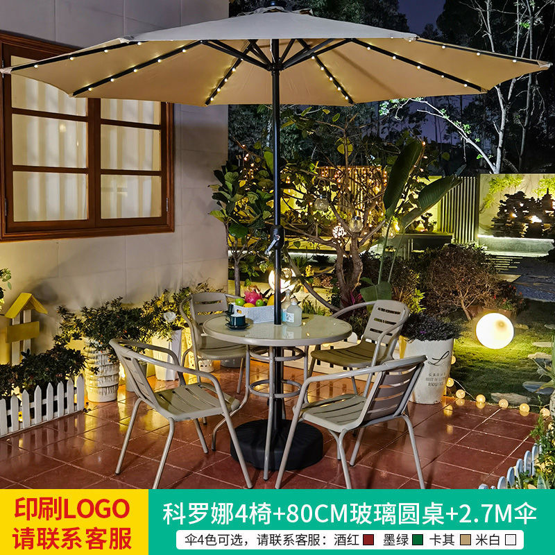 • 의자 6개 + 160CM 두께의 탄소강 긴 테이블 + 로마 우산 2.5m개
