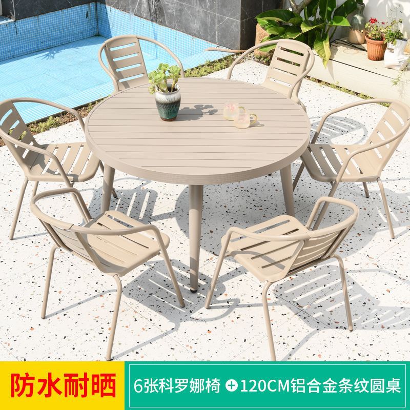 • 6+1【120CM 알루미늄 합금 줄무늬 원형 테이블】
