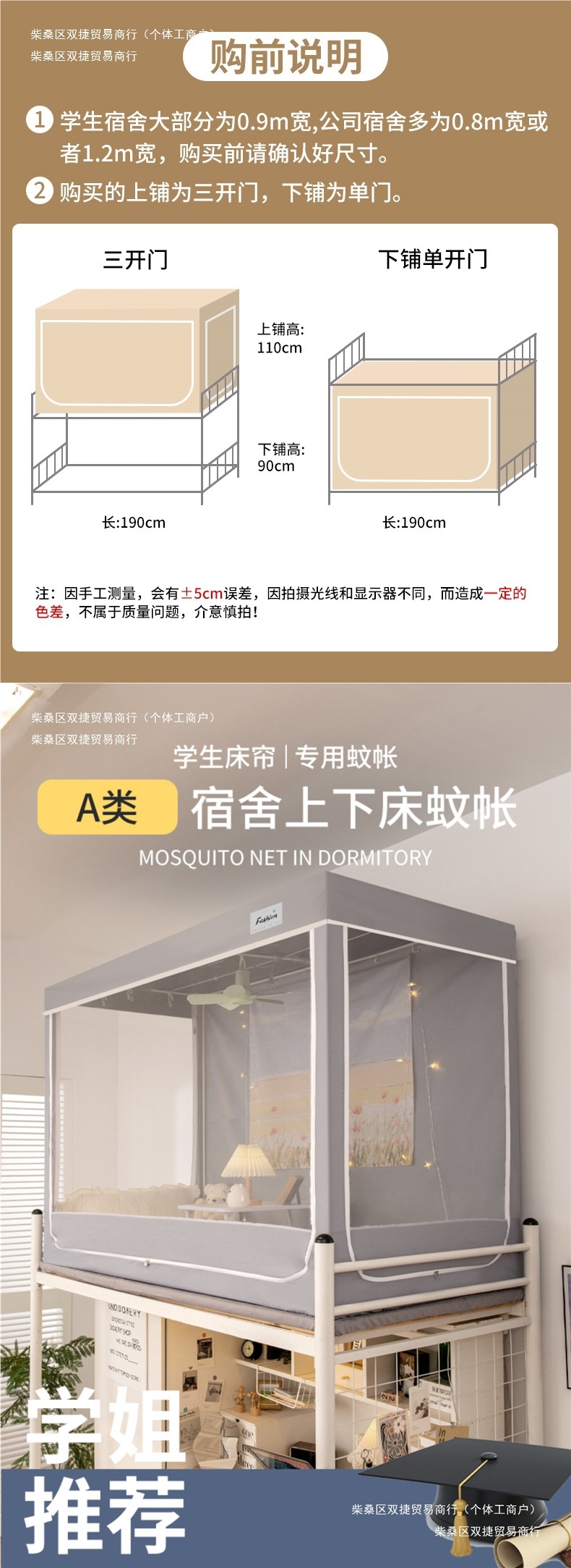 모기장 일체형 무코팅 쉘 차광 일체형 대학 이층 침대 기숙사 침대 커튼 이층 모기장