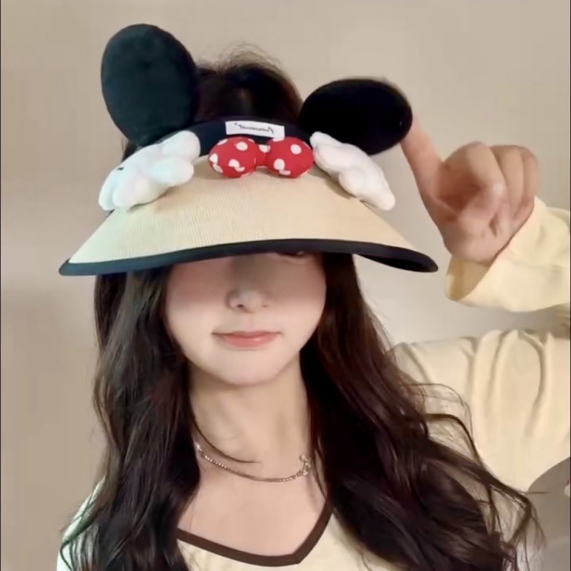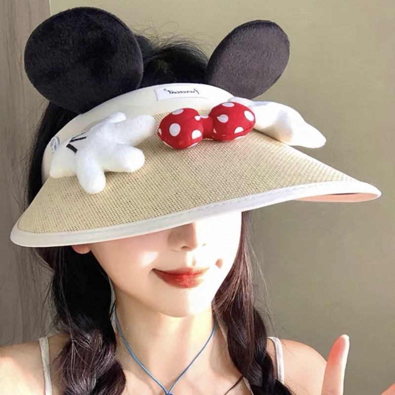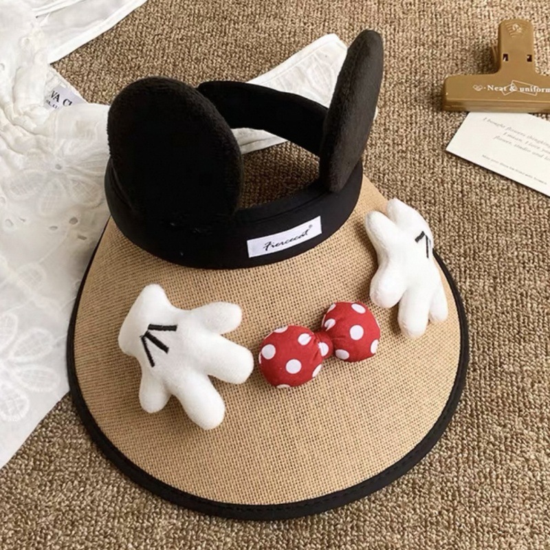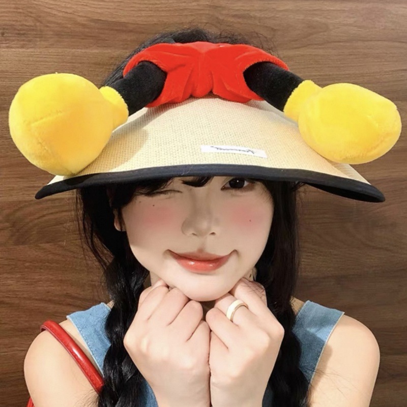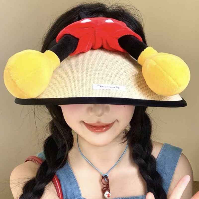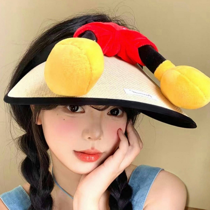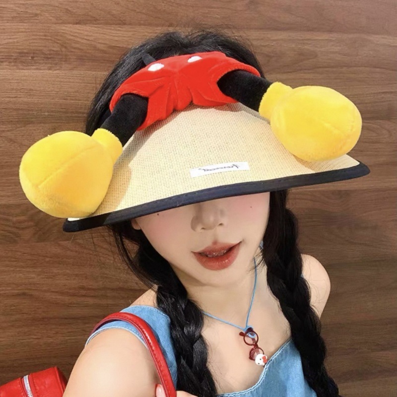 귀여운 미키 엉덩이 밀짚 모자 만화 여름 선 스크린 빈 모자 밀짚 모자 인터넷 축하 미키 마우스 UV 보호스토어 가기