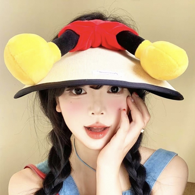 귀여운 미키 엉덩이 밀짚 모자 만화 여름 선 스크린 빈 모자 밀짚 모자 인터넷 축하 미키 마우스 UV 보호