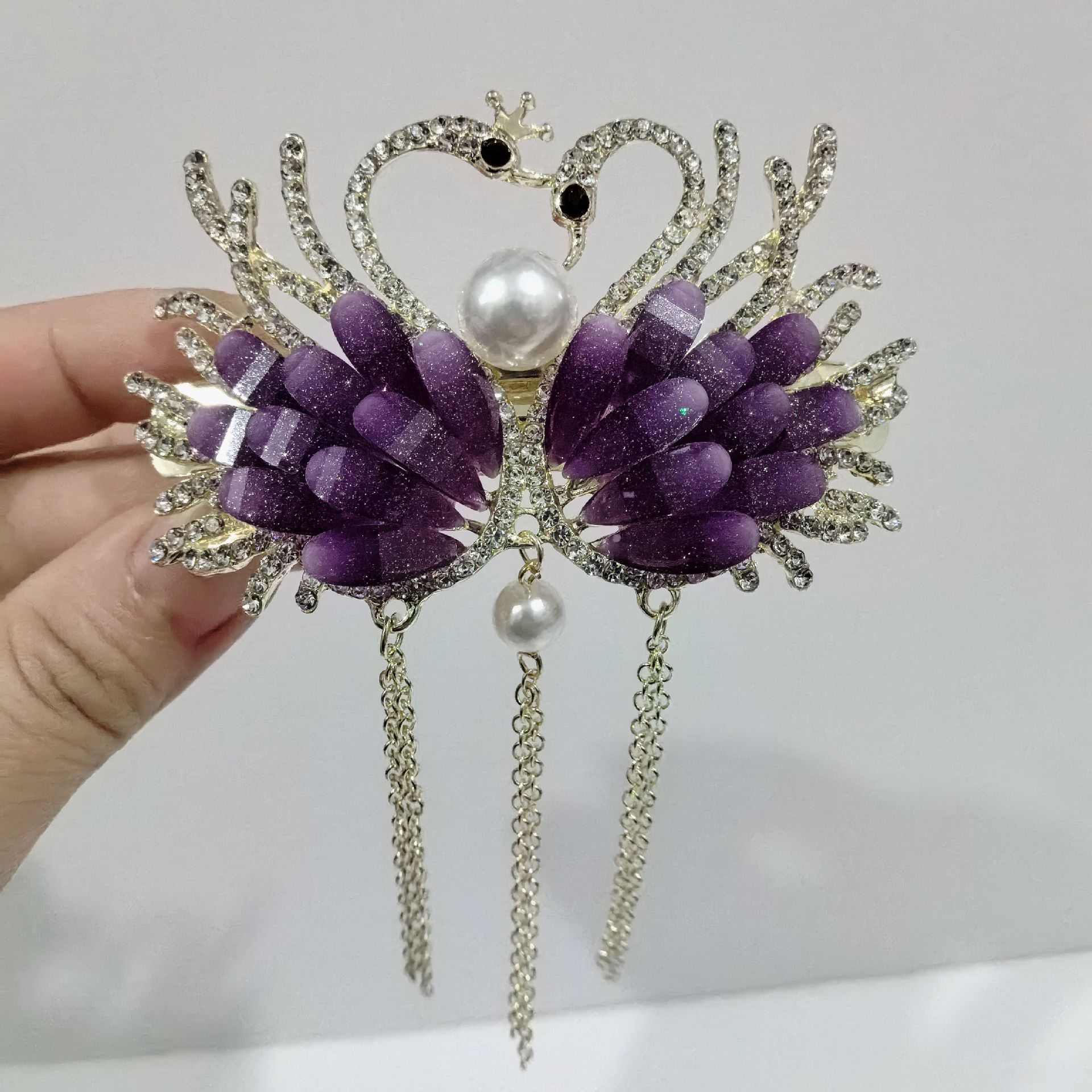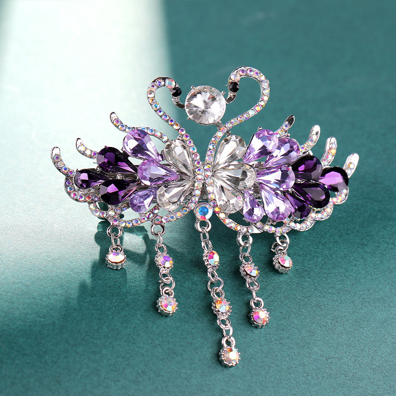 • 크리스탈 더블 스완 태슬 퍼플 라지