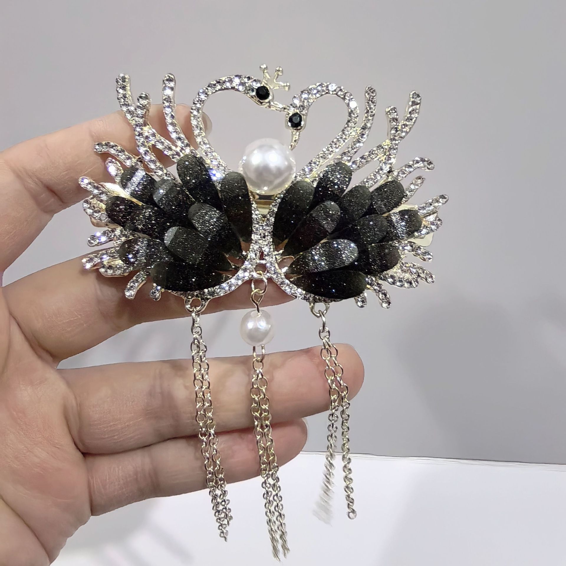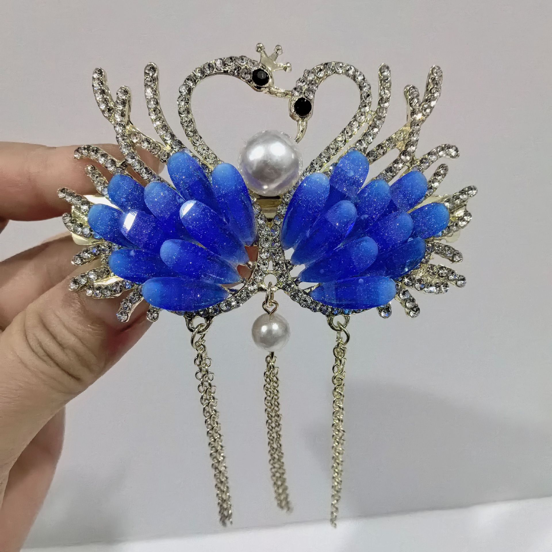• 크리스탈 더블 스완 잉크 블루 그레이 태슬 대형