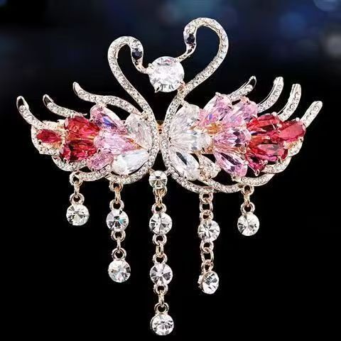 • 크리스탈 더블 스완 핑크 태슬 라지