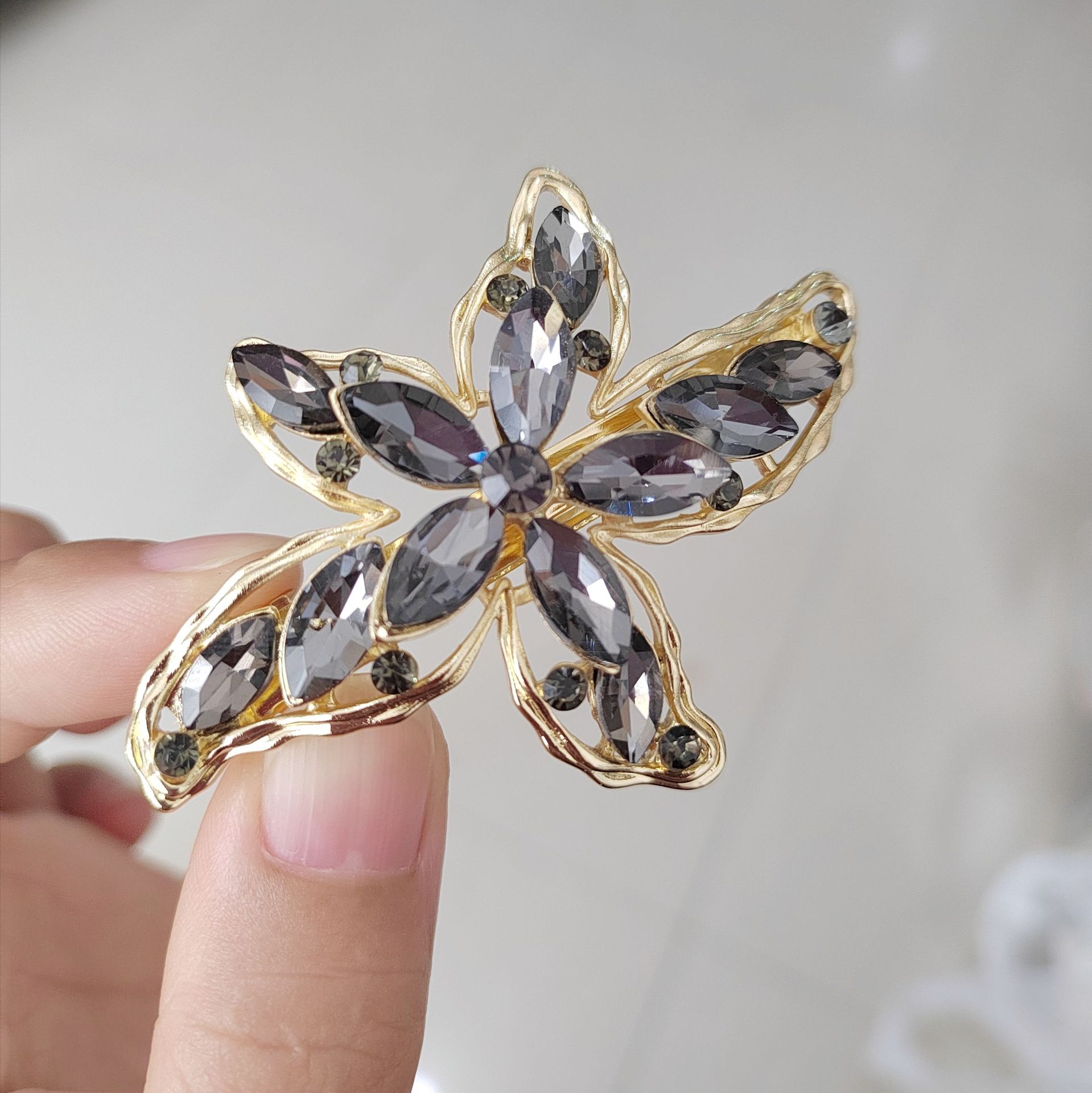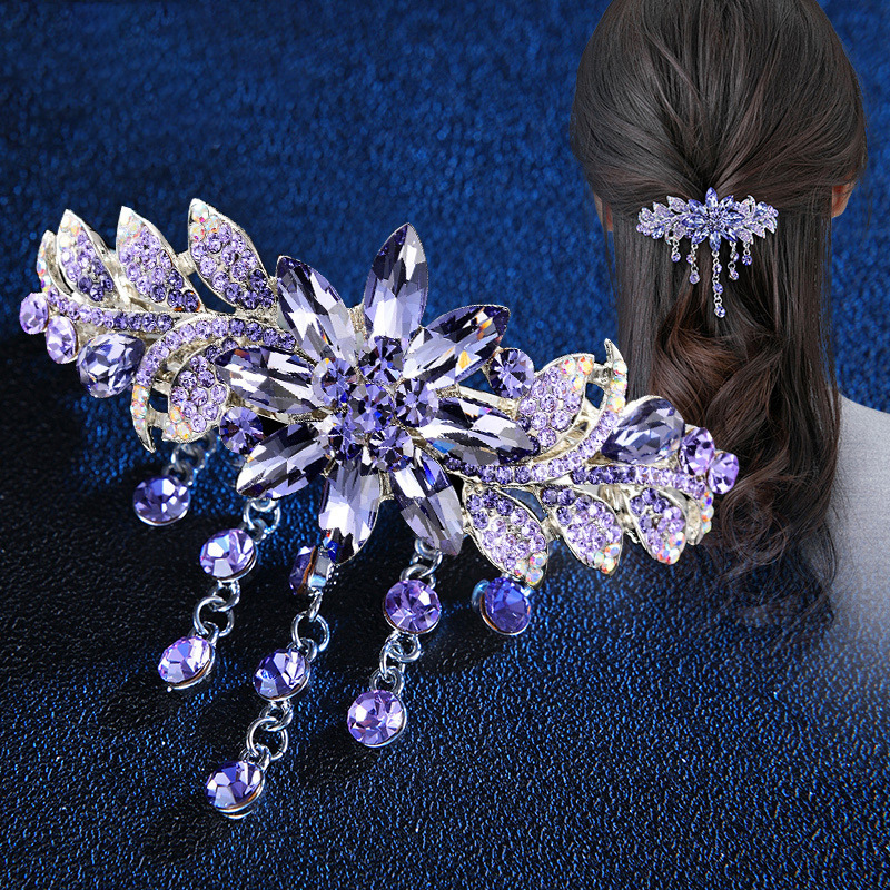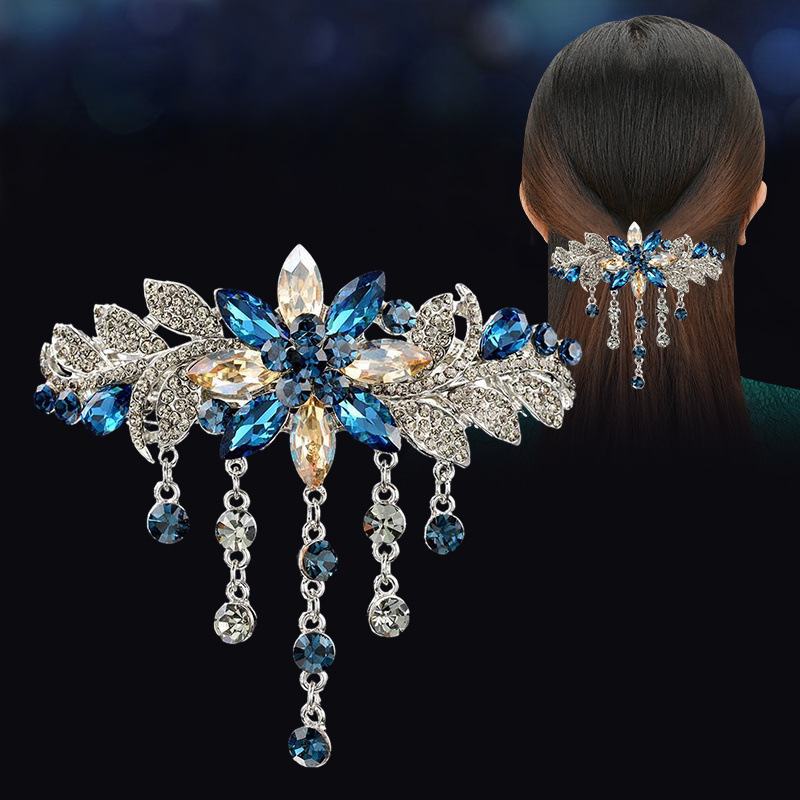 가벼운 고급 고급 술 라인 스톤 헤어 클립 여성용 등 머리 봄 클립 한국식 우아한 다이아몬드 어머니 헤어 클립 헤어 액세서리