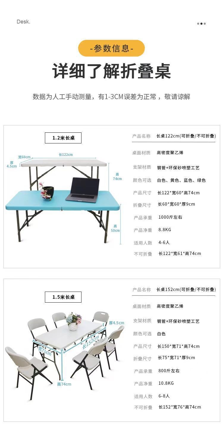 접이식 테이블 야외 휴대용 식탁 직사각형 스톨 야시장 회의 홈 식사 컴퓨터 학습 테이블과 의자