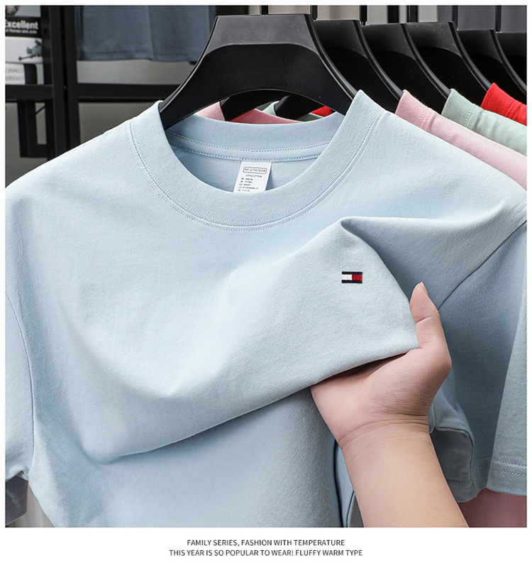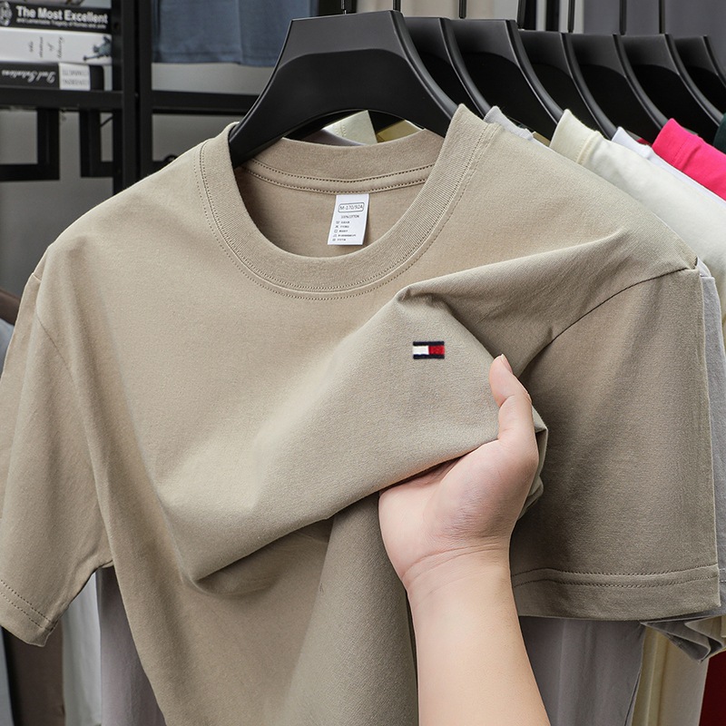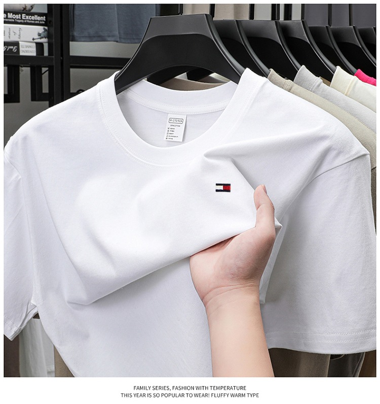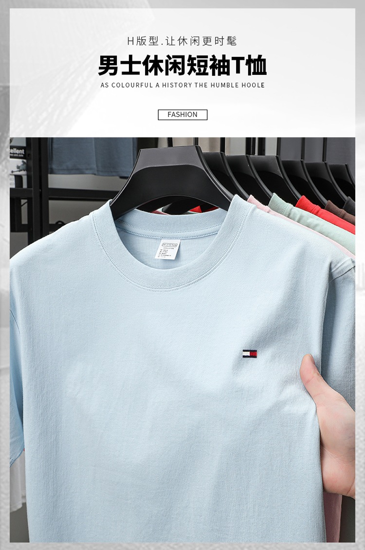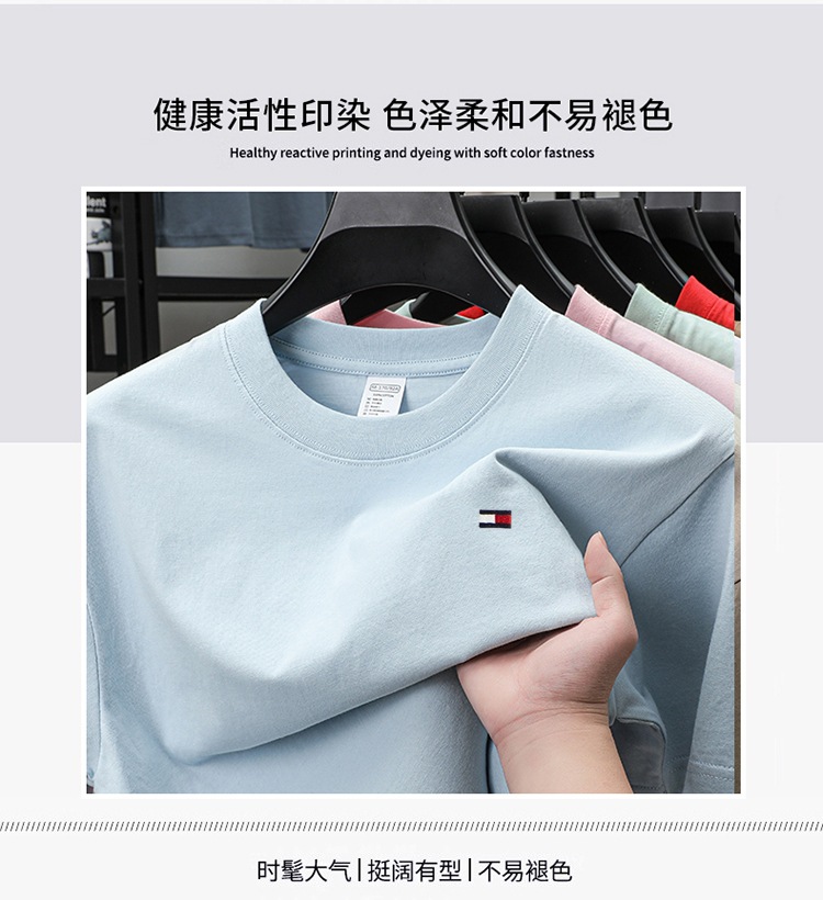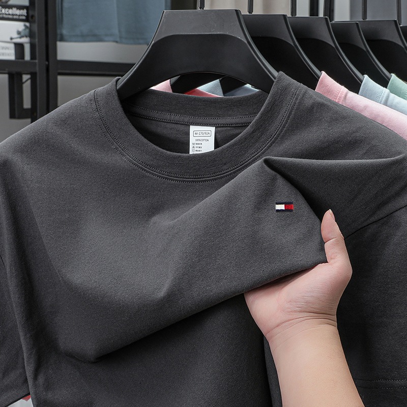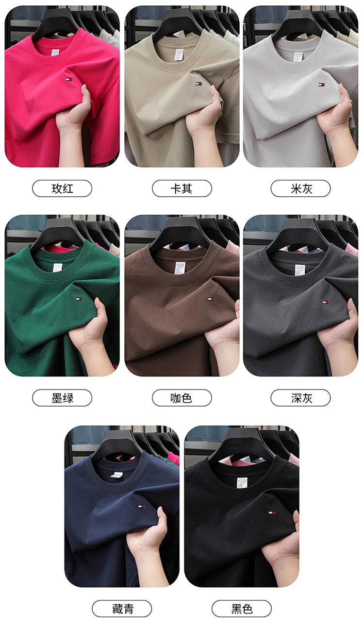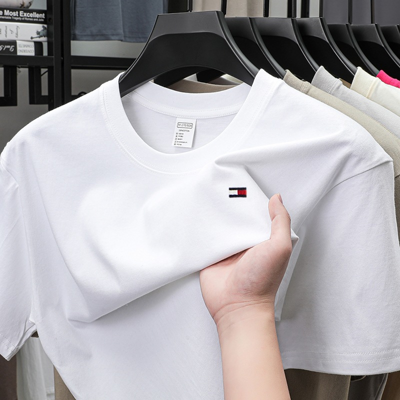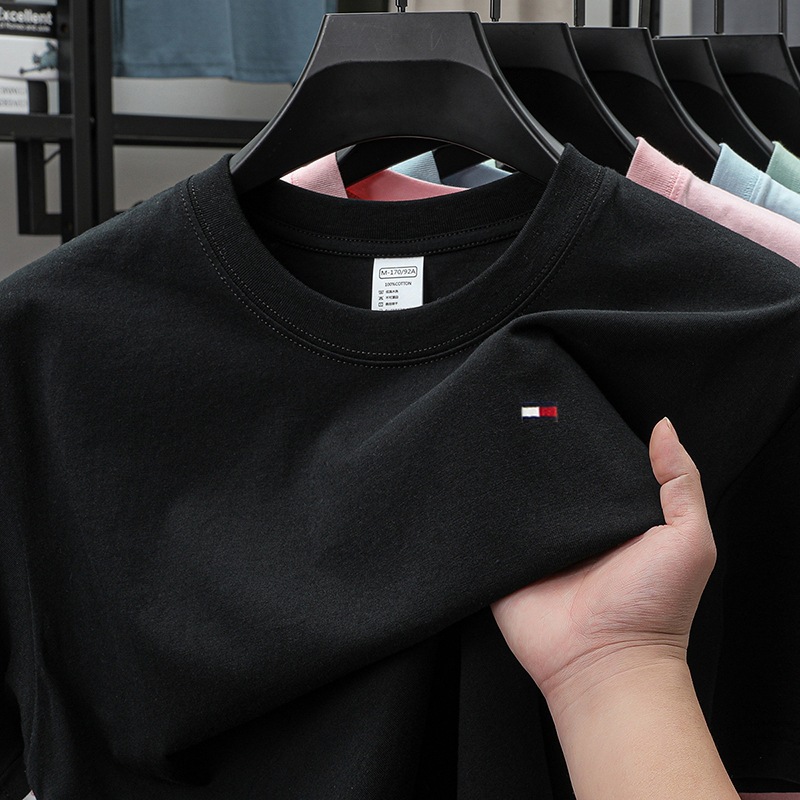 정품 토미 토미 클래식 100% 코튼 반팔 티셔츠 유니섹스 단색 단순 커플베이스 재킷