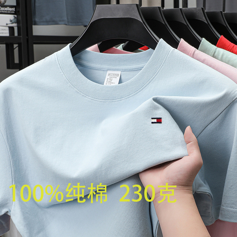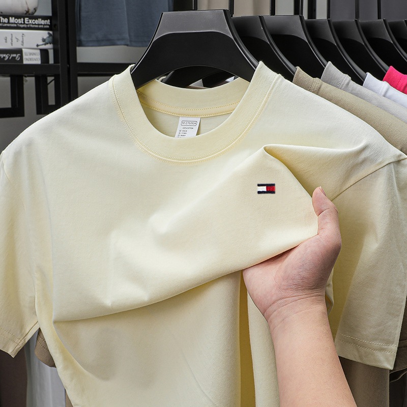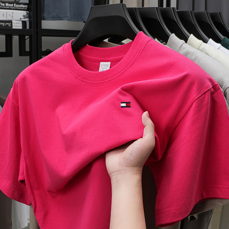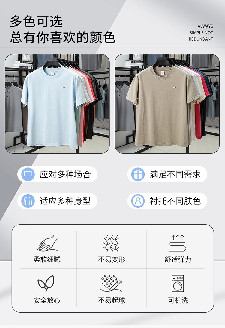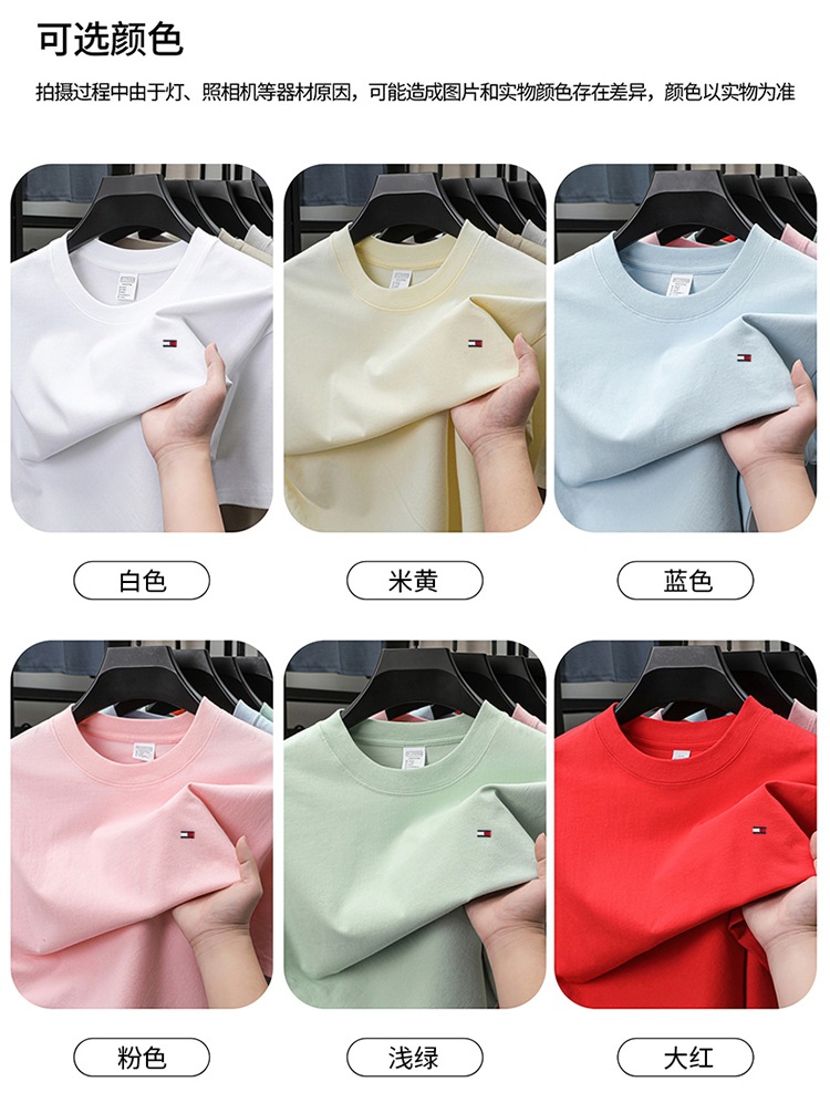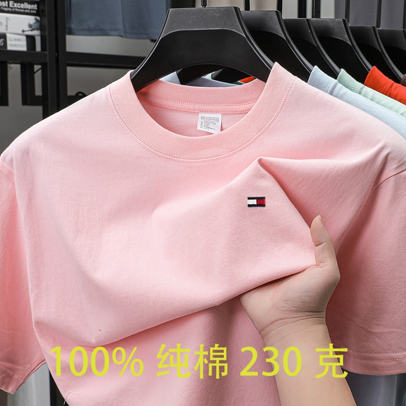 정품 토미 토미 클래식 100% 코튼 반팔 티셔츠 유니섹스 단색 단순 커플베이스 재킷스토어 가기