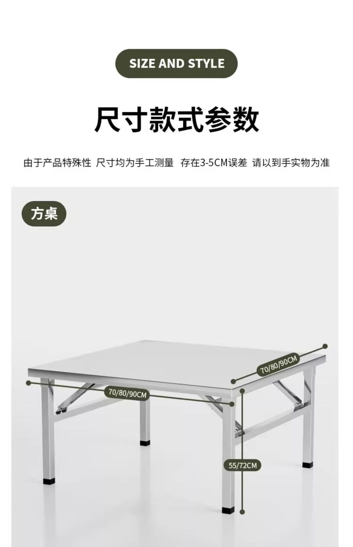 J^ 스테인레스 스틸 테이블 야외 캠핑 접이식 테이블 가정용 사각형 테이블 식탁 80 사각형 테이블 매점