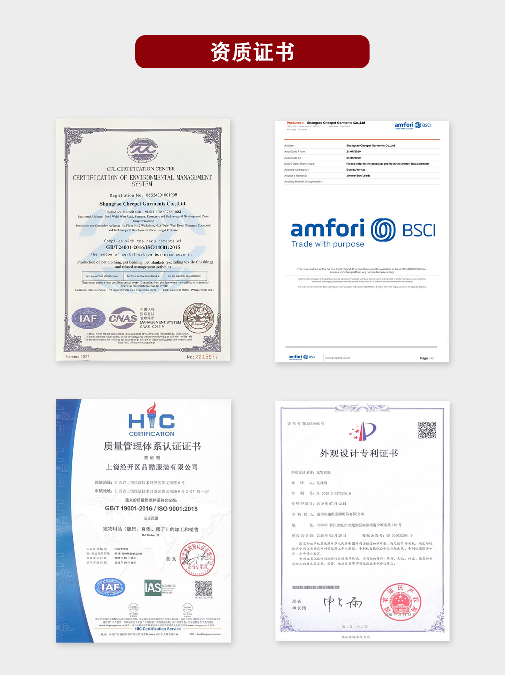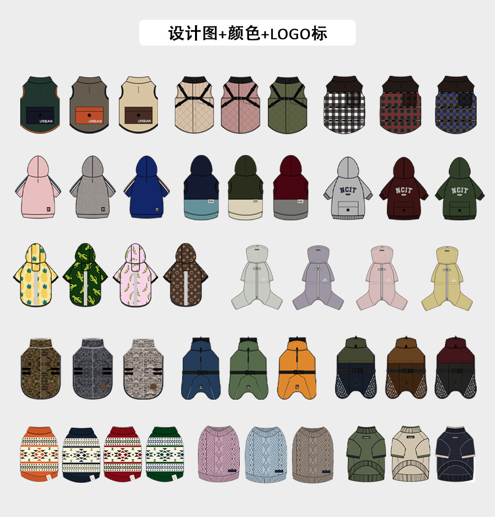 我们提供多种类型的宠物服装,宠物雨衣、冲锋衣、卫衣、裙子、T恤、马甲、毛衣、康复服、安抚衣、救生衣、节日cosplay服装、宠物配饰等及定制款式。