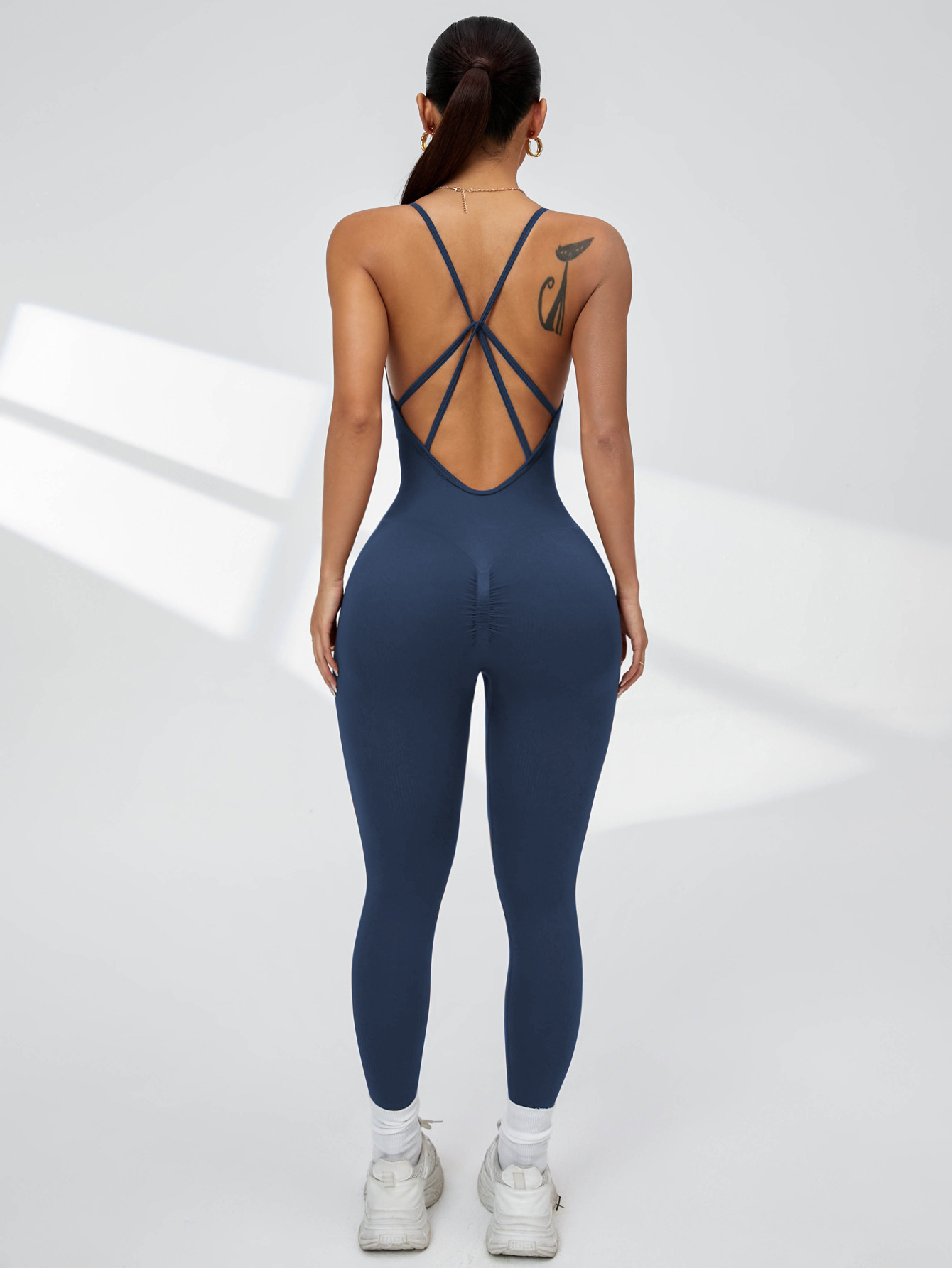 유럽과 미국의 섹시한 원피스 요가복 복숭아 엉덩이 스포츠 피트니스 속건성 크로스 아름다운 등 원피스 요가 타이트 팬츠
