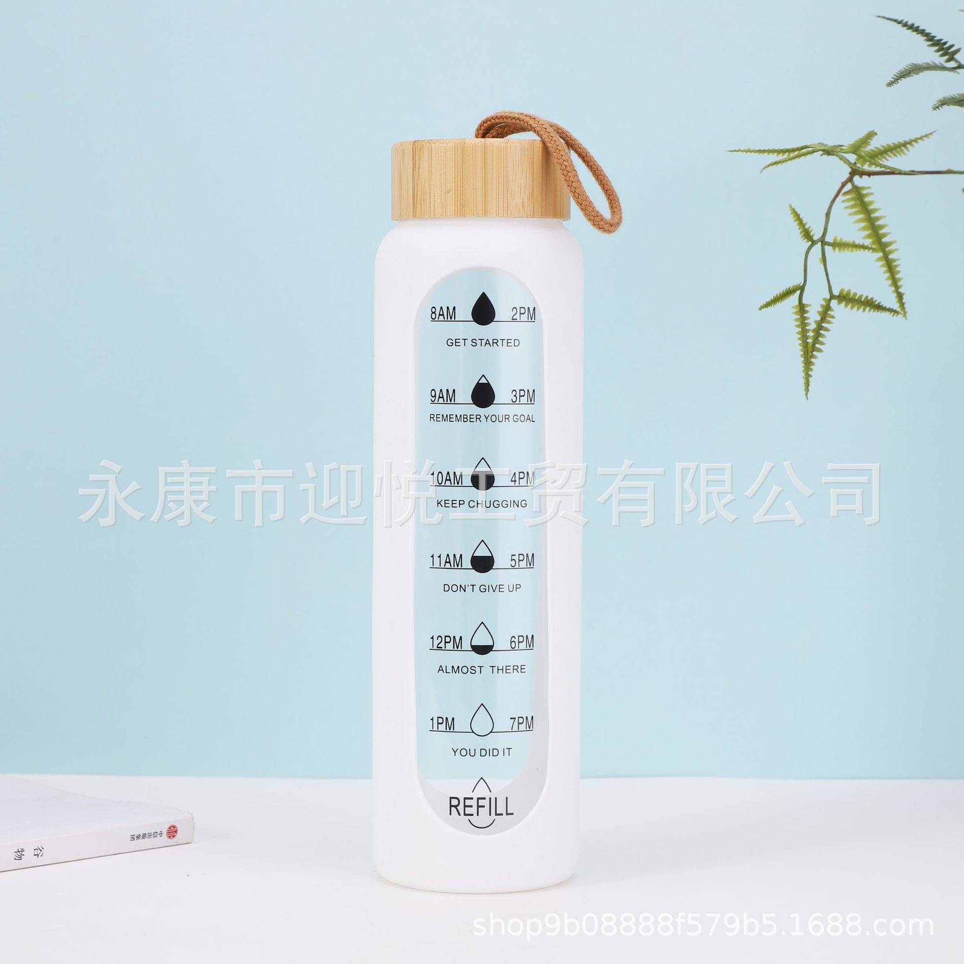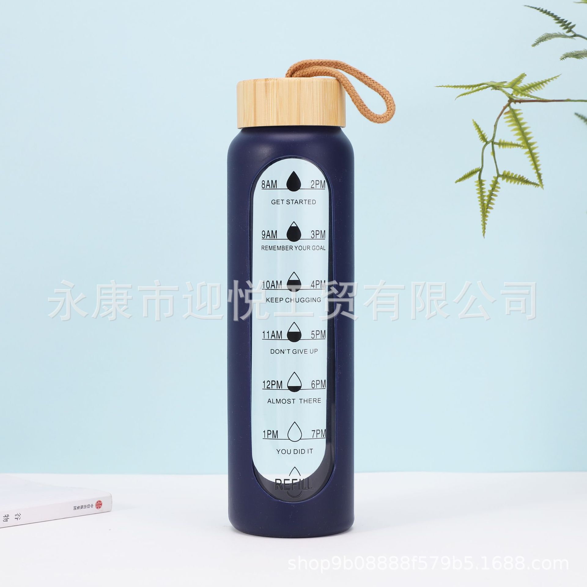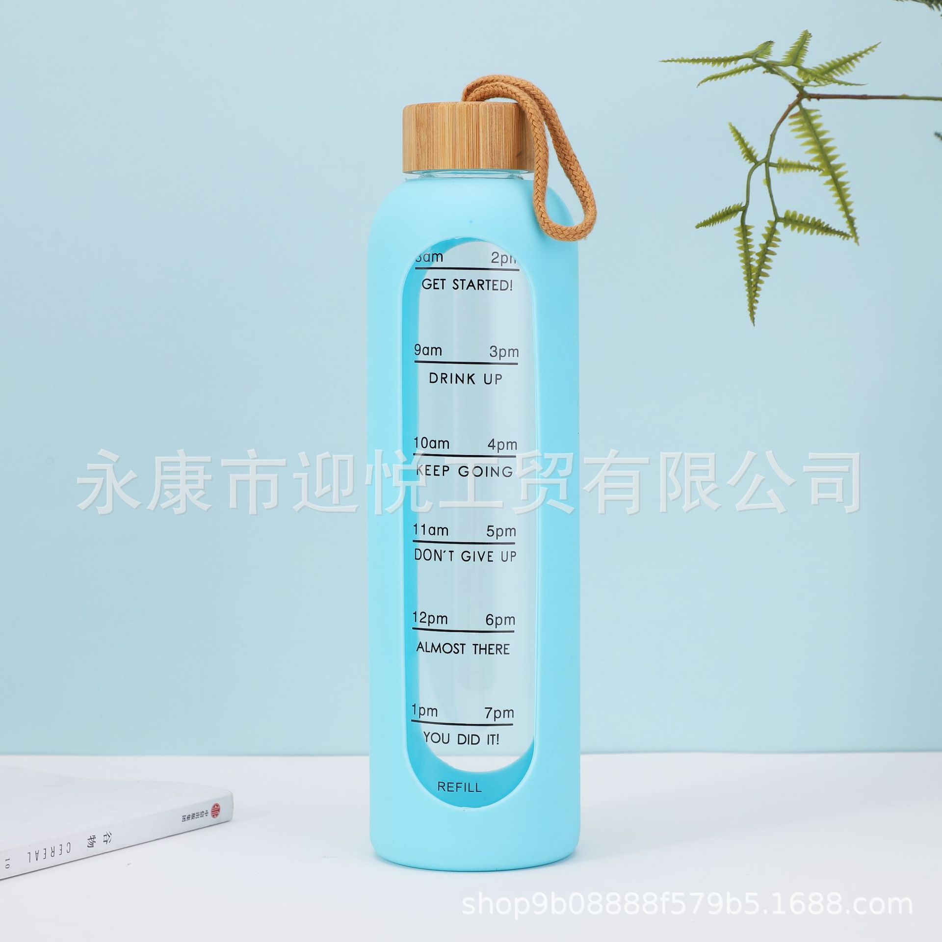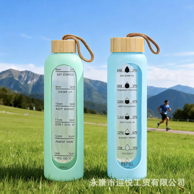 크로스보더 고붕규산염 단층 유리병, 투명, 눈금 표시, 끈이 달린 스포츠 물컵, 1L 대용량 직수형 물컵스토어 가기