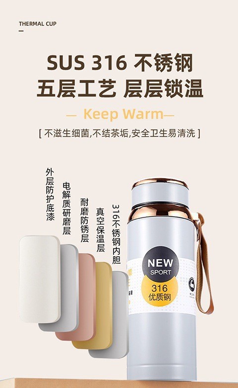 새로운 316 스테인레스 스틸 대용량 하오진 보온병 야외 휴대용 스포츠 주전자 보온병