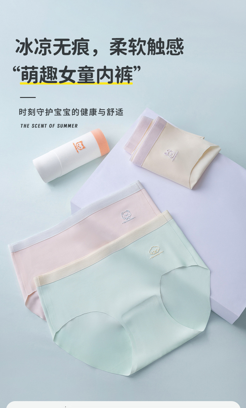 클래스 A 여아 속옷, 아이스 실크 무봉제 여아용 항균 복서 반바지, 여름용 얇고 클램핑되지 않는 PP 팬티스토어 가기
