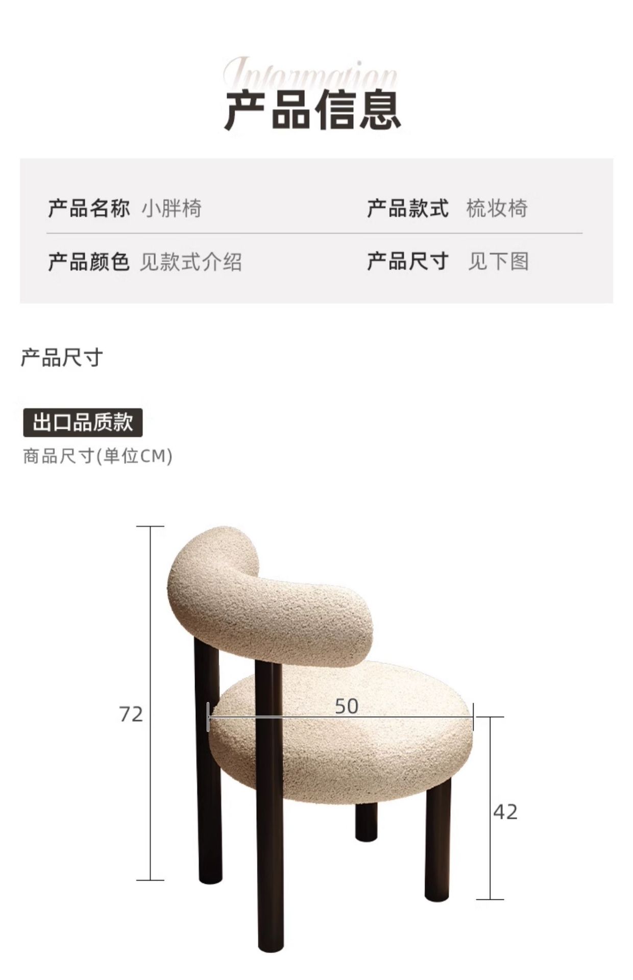 • 수출품질️두꺼운 시트쿠션 + 두꺼운 스툴다리️[크림화이트] 램스울