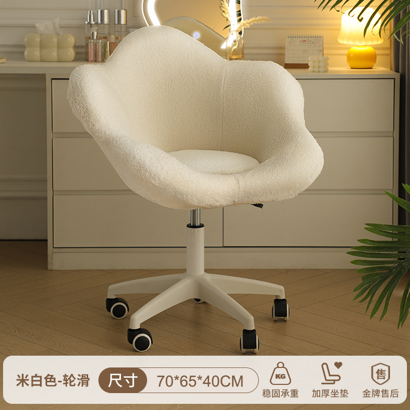 • [오프화이트 - 롤러스케이트 스타일] 램스울 꽃잎 의자 (회전 및 들어올릴 수 있음)