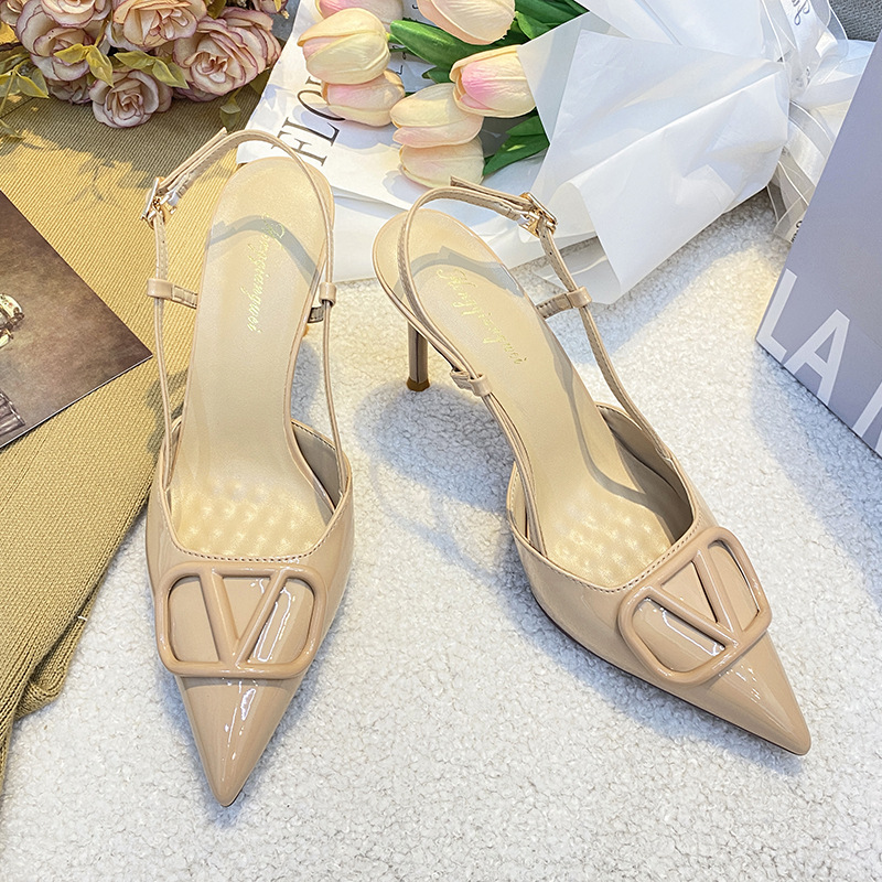 V-버클 하이힐 여성 2025 년 새 여름 누드 포인팅 스틸레토 힐 리어 빈 신발 여성용 프렌치 발가락 샌들스토어 가기