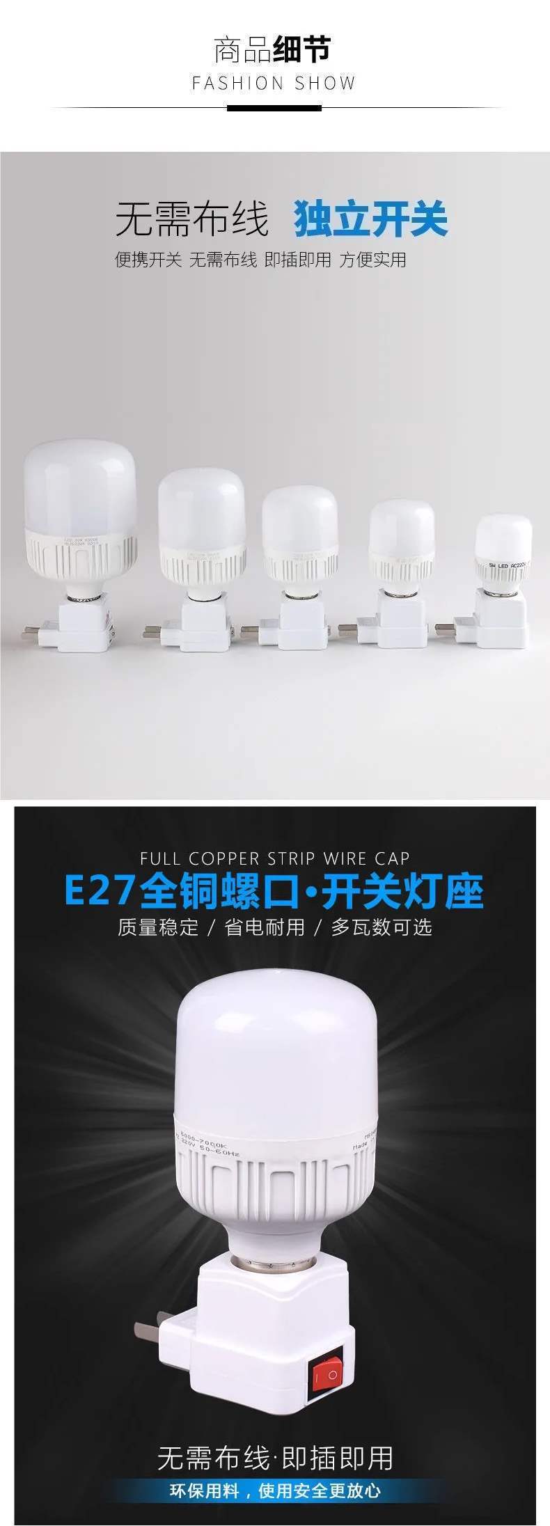 • 3W 비엔티안 램프 홀더 + 유도 없는 10W LED 에너지 절약 램프