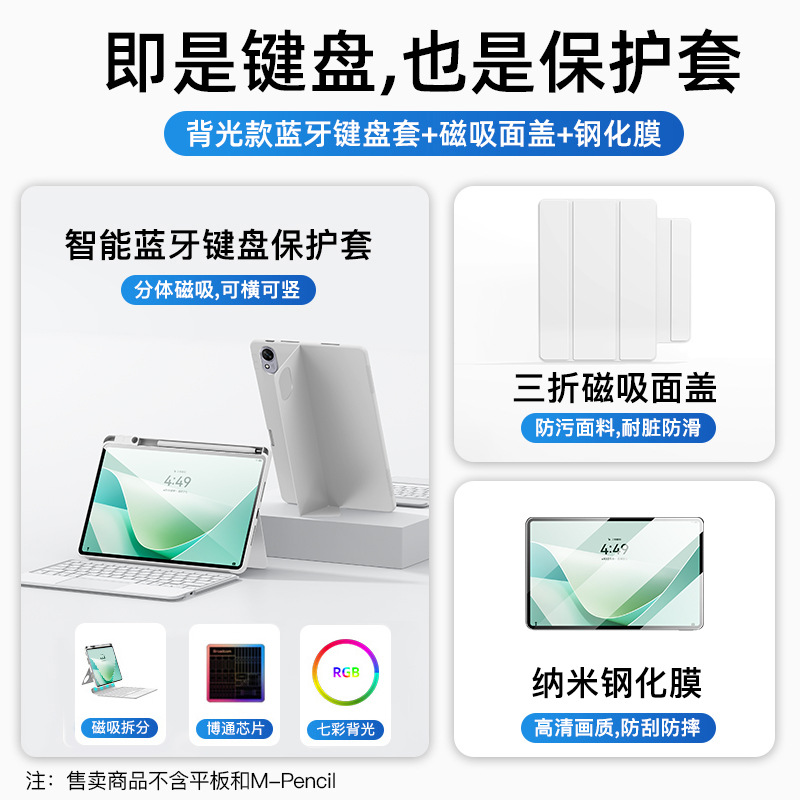 • SF Express ️ 화이트 [업그레이드된 양면 방오 ️ 자기 분할] 백라이트 모델 ️ 스마트 매직 키보드 커버 + 70% off 자기 커버 + 블루투스 마우스 + 정전식 펜