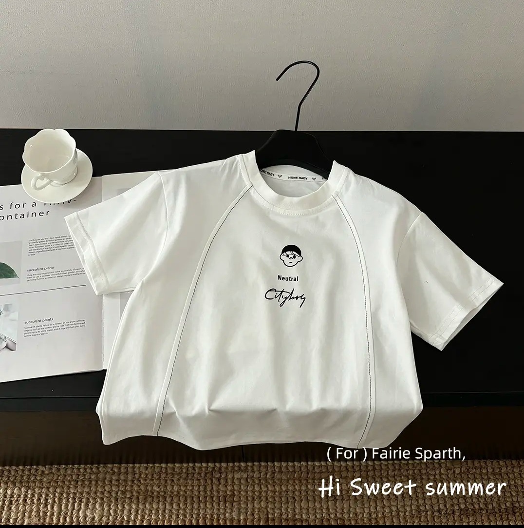 [헤비솔로나] 시원한 면 T 여름 아동 반팔 티셔츠 아동복 다재다능하고 스타일리시한 한국판 엄선스토어 가기