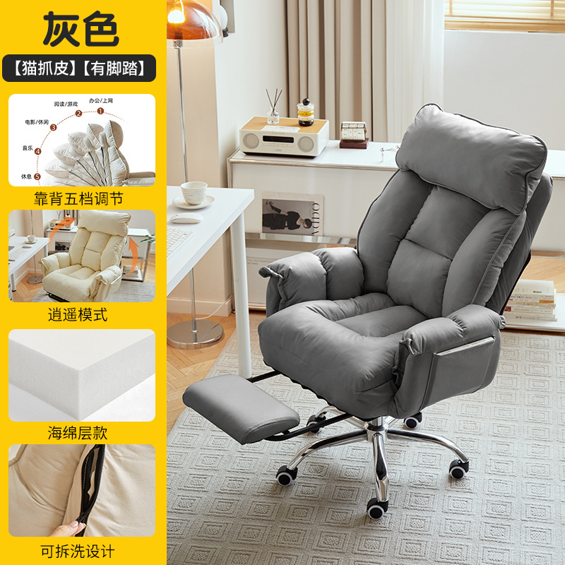 • [캣클로 가죽] 그레이 + 풋 페달 + 스펀지 스타일 (분해 및 세탁 불필요 + 등받이 5단계 조절)