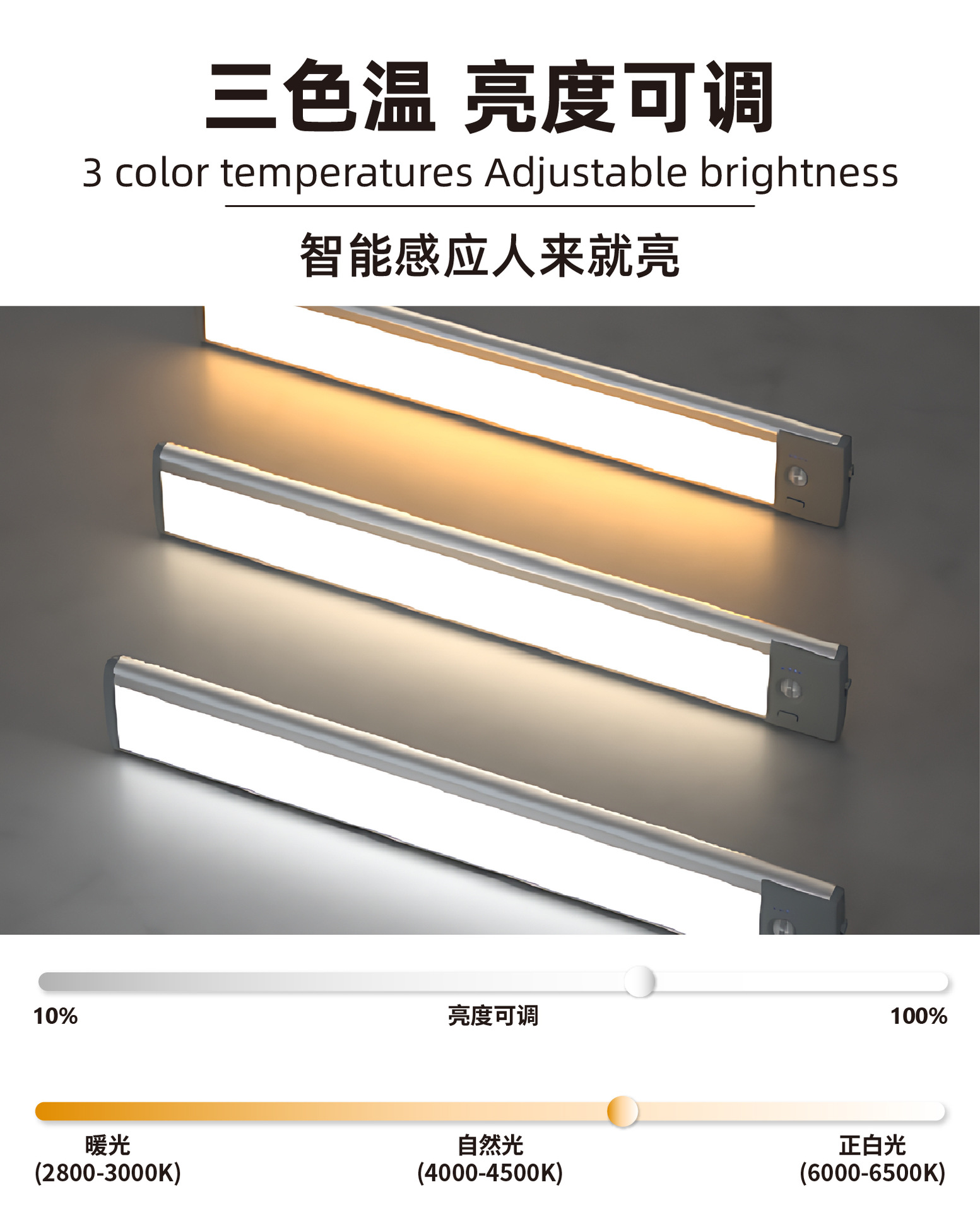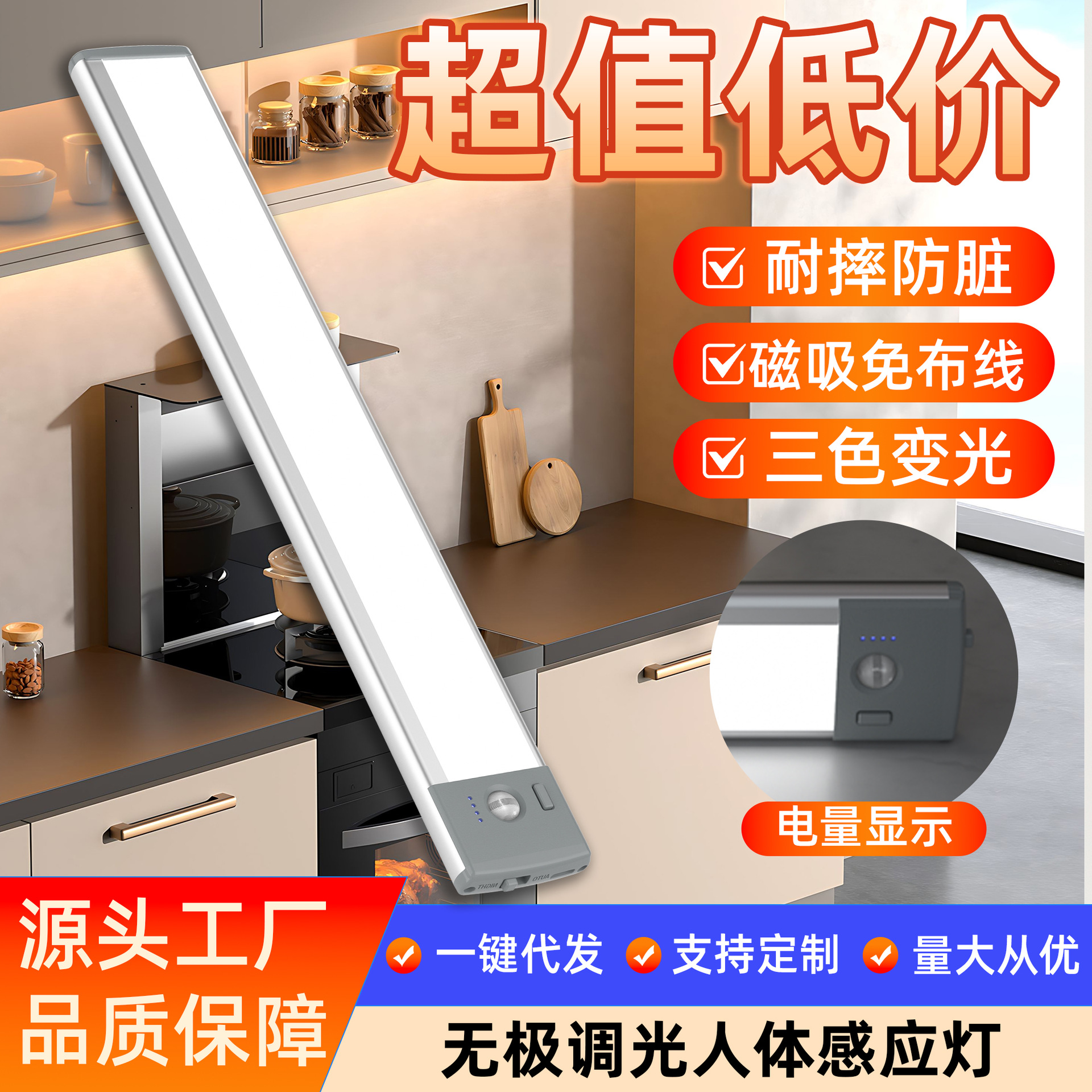 Amazon 초박형 인체 센서 램프 야간 조명 자기 옷장 램프 무선 3 색 온도 디밍 LED 캐비닛 램프