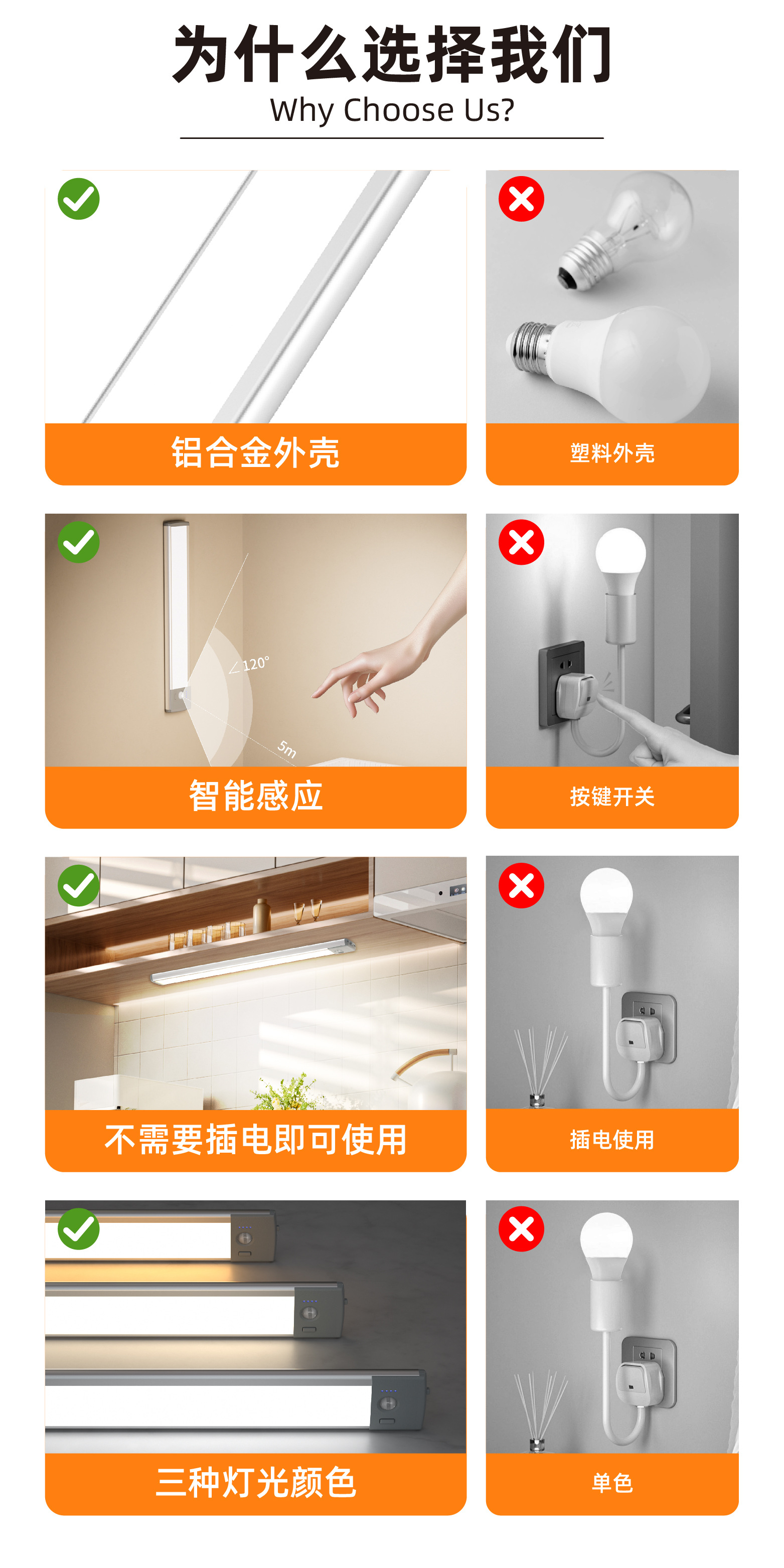 Amazon 초박형 인체 센서 램프 야간 조명 자기 옷장 램프 무선 3 색 온도 디밍 LED 캐비닛 램프스토어 가기