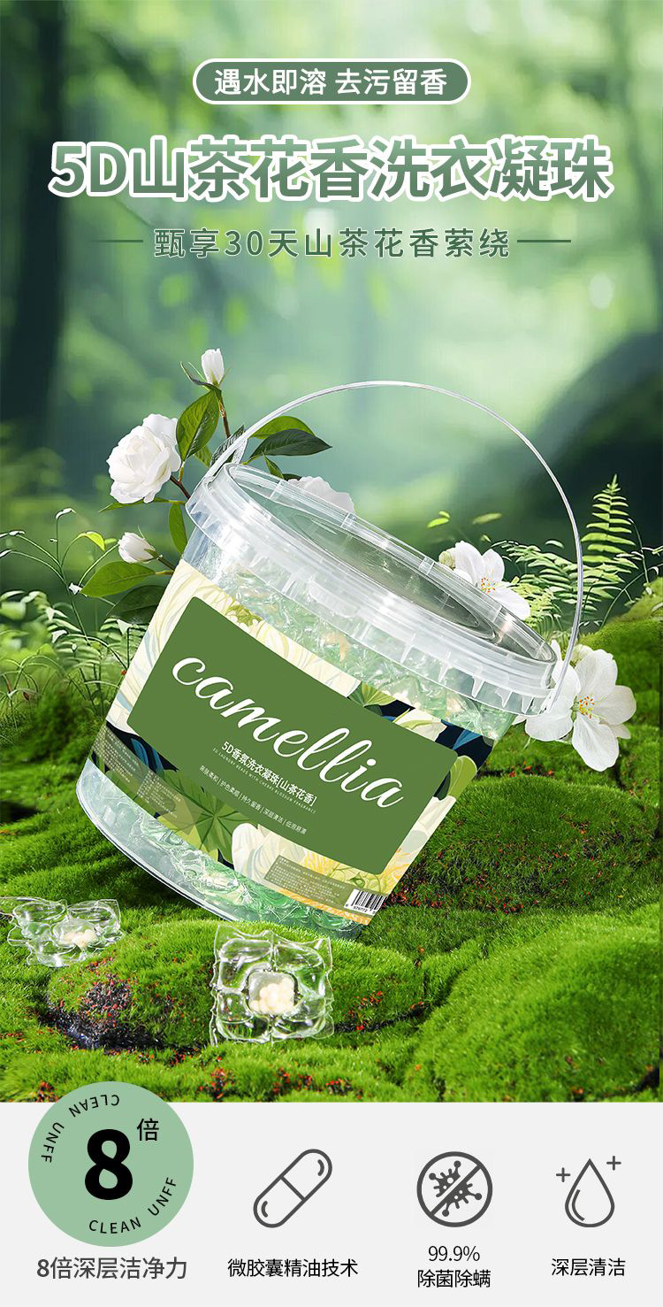동백 세탁비즈, 향비즈, 5가지 기능이 모두 포함된 오래 지속되는 향, 오염제거 농축 세탁세제, 패밀리팩 세탁비즈