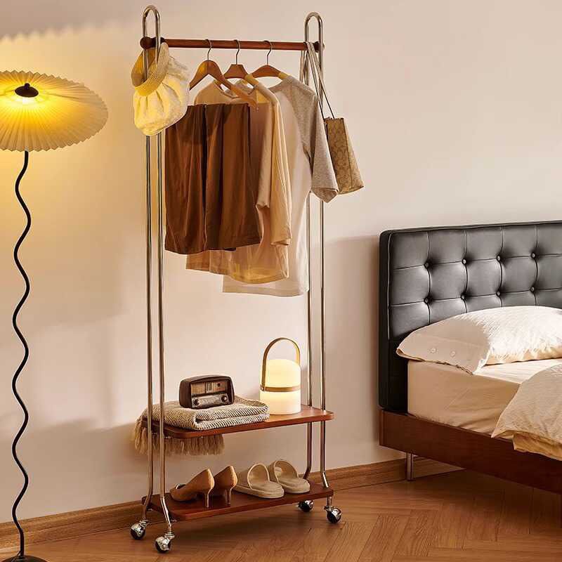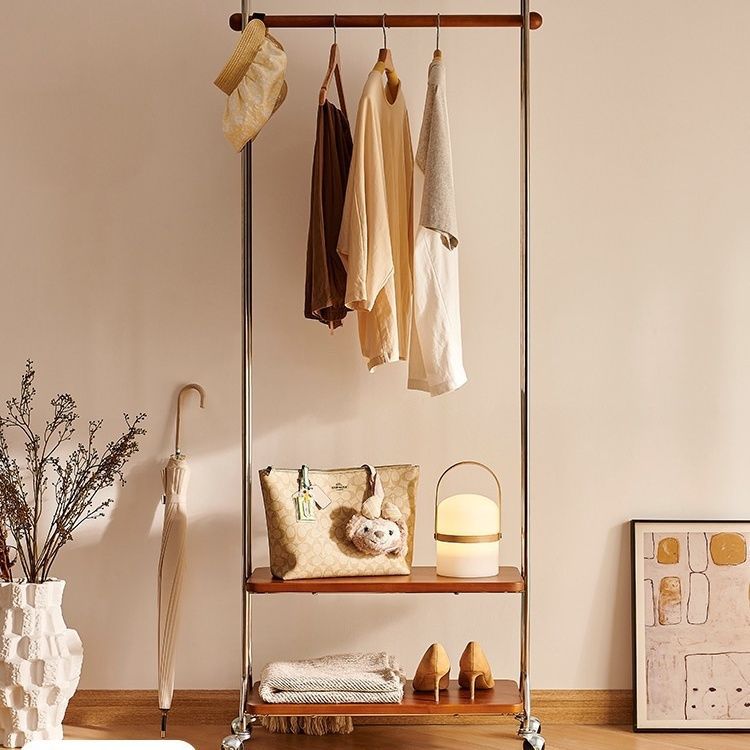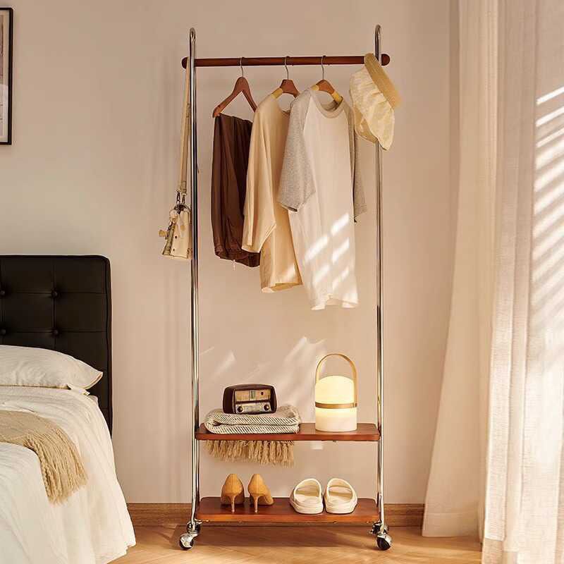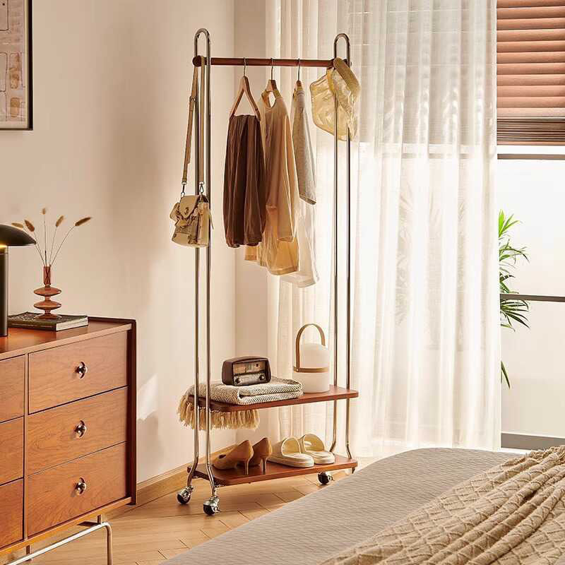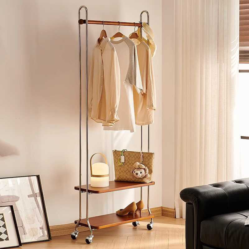 중고 수납 옷걸이 바닥 스탠딩 침실 홈 실내 프랑스 이동식 코트 랙 단단한 나무 코너 옷