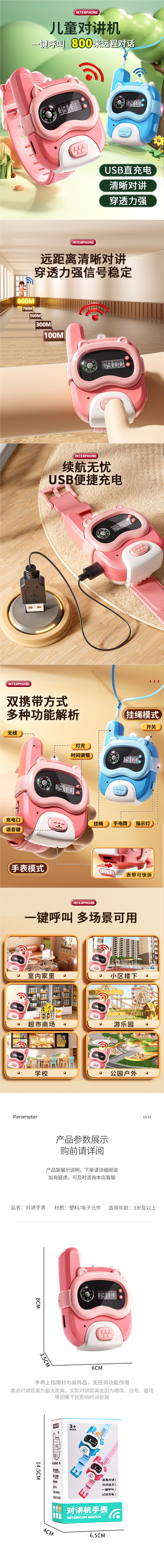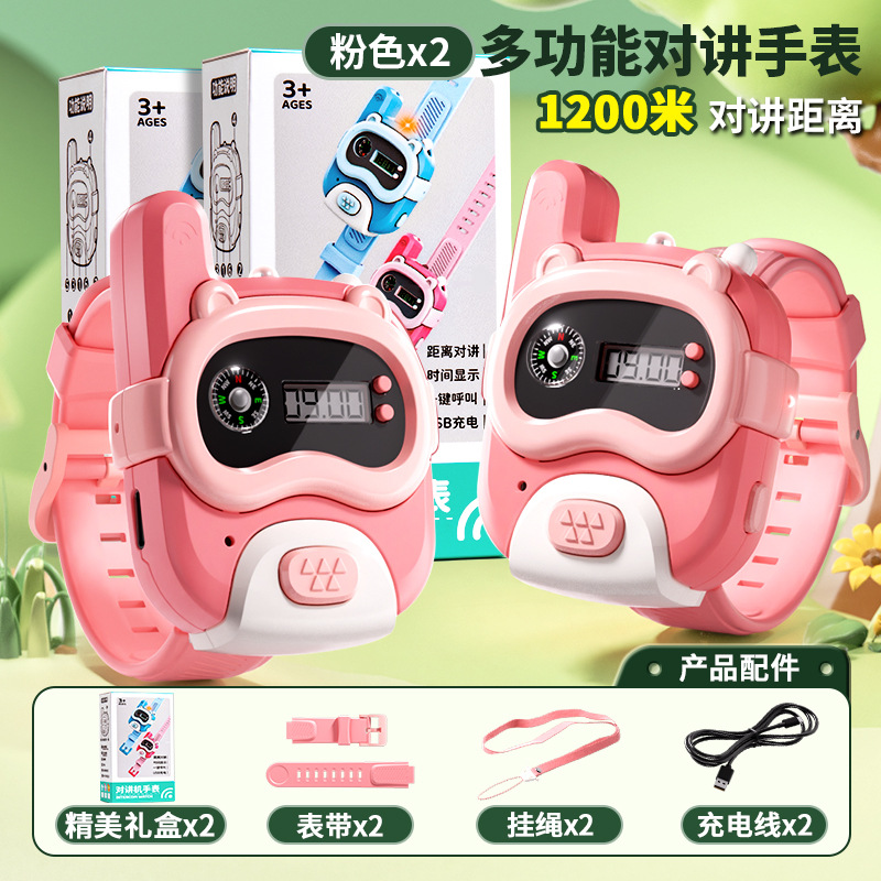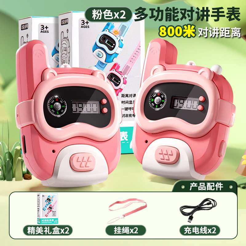 • [800m - 싱글 팩] 핑크 시계 인터폰 (시계줄 + 충전 케이블 + 분실 방지 로프 + 정교한 선물 상자)