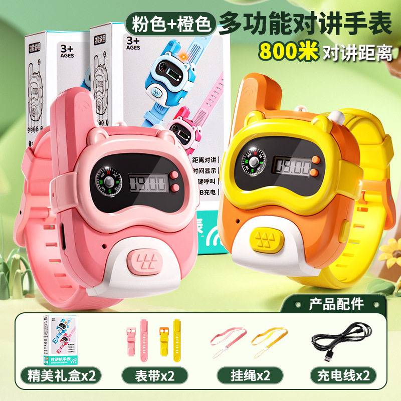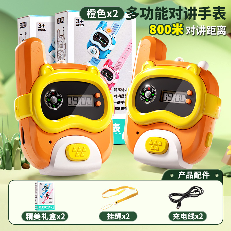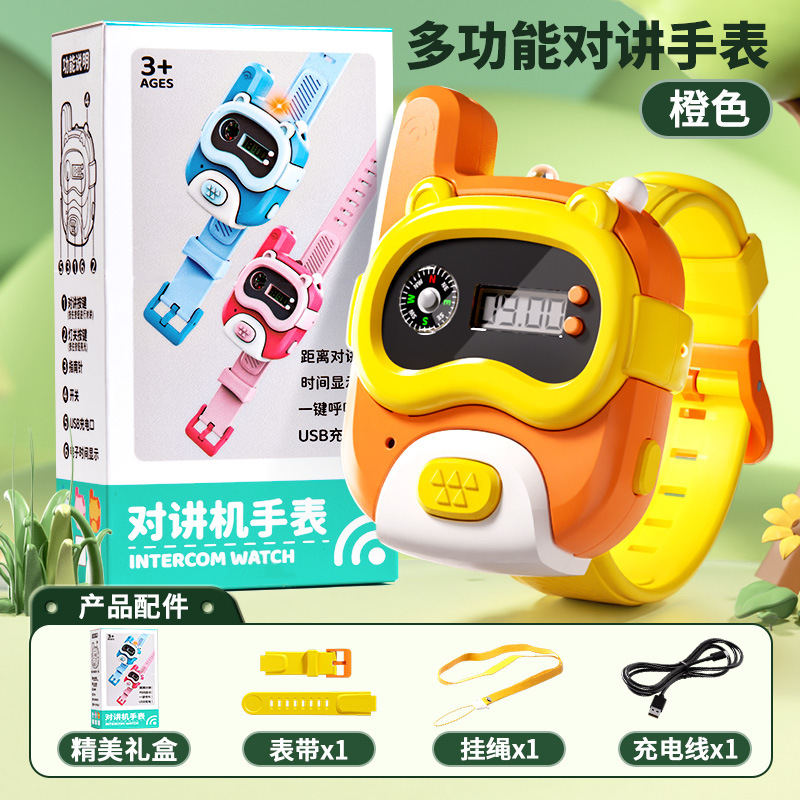 • [800m - 싱글 팩] 오렌지 시계 인터콤 (시계줄 + 충전 케이블 + 분실 방지 로프 + 정교한 선물 상자)