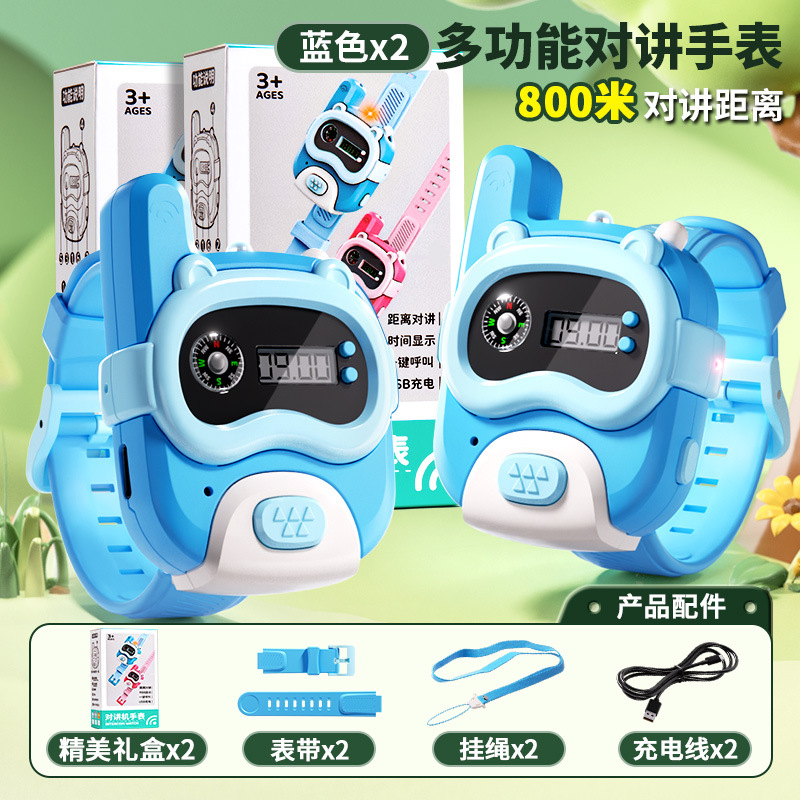 • [800m - 싱글 팩] 블루 시계 인터콤 (시계줄 + 충전 케이블 + 분실 방지 로프 + 정교한 선물 상자)
