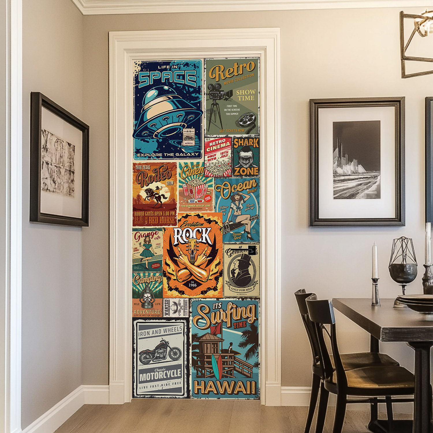 Funlife Amazon 새로운 복고풍 영화 포스터 도어 스티커 엘리베이터 입구 방수 자체 접착 장식 스티커 DM352