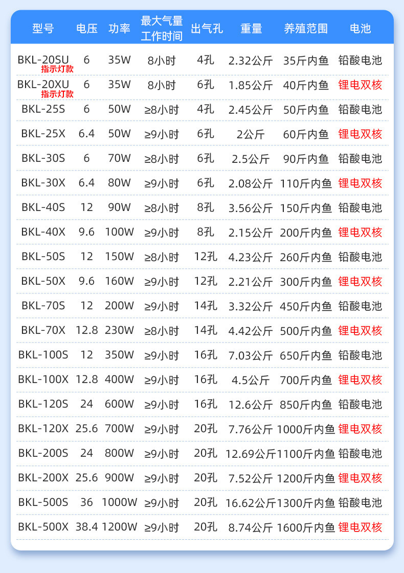 • 35W 리튬 배터리 듀얼 코어-6홀 표시등 모델(25kg 물고기)