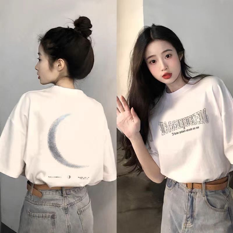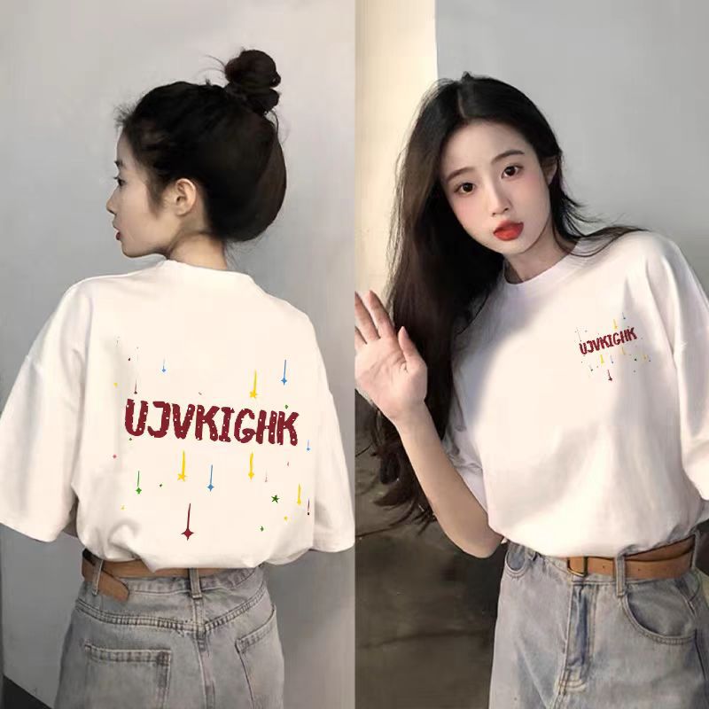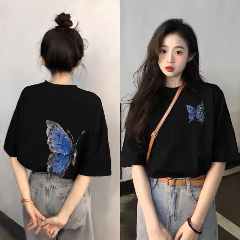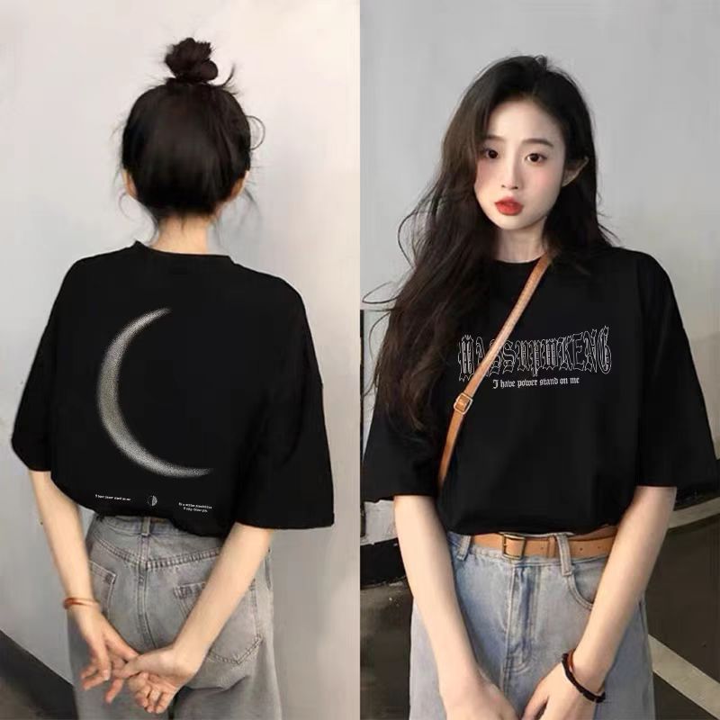 블랙 반소매 코튼 티셔츠 여성 2025 년 여름 새로운 폭발 느슨한 대형 반소매 탑 티셔츠스토어 가기